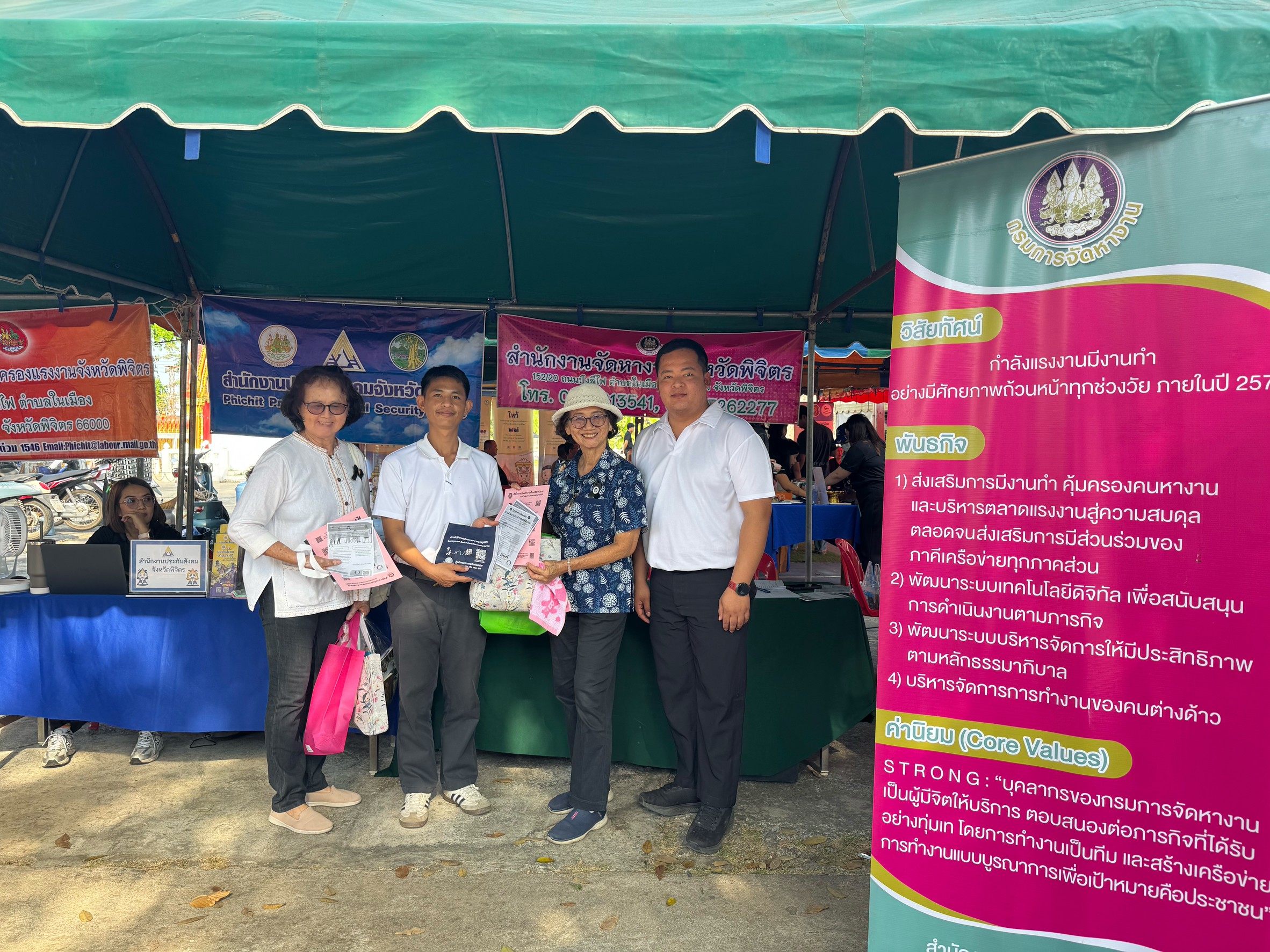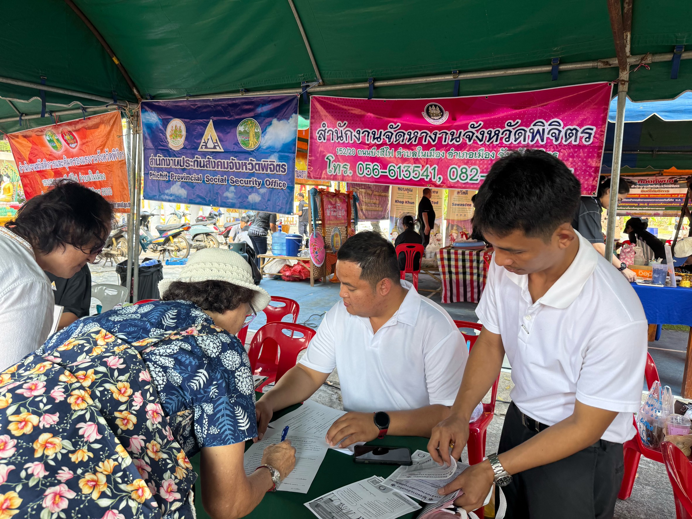 วันศุกร์ที่ 27 กุมภาพันธ์ 2569 นายวินัย ทองอุบล จัดหางานจังหวัดพิจิตร มอบหมายให้นายประกิจ อยู่กรุง ตำแหน่ง นักวิชาการแรงงานชำนาญการพิเศษและเจ้าหน้าที่สำนักงานจัดหางานจังหวัดพิจิตร ออกพื้นที่บริการประชาชน โครงการบำบัดทุกข์ บำรุงสุข สร้างรอยยิ้มชาวพิจิตร ประจำปี งบประมาณ พ.ศ.2569 ครั้งที่ 5 ณ วัดท่าช้าง อำเภอบางมูลนากและได้ดำเนินการโครงการจัดหางานเชิงรุกเพื่อการมีงานทำอย่างยั่งยืน กิจกรรมเสริมสร้างความมั่นคงและยั่งยืน โดยให้บริการจัดหางานเคลื่อนที่ ส่งเสริมการประกอบอาชีพอิสระให้ความรู้เกี่ยวกับการไปทำงานต่างประเทศอย่างถูกต้องการจ้างแรงงานต่างด้าวอย่างถูกต้องตามกฎหมายและการคุ้มครองคนหางาน มีผู้ที่สนใจเข้าร่วมกิจกรรม จำนวน 50 คน โดยมีนายกิติพล เวชกุล รองผู้ว่าราชการจังหวัดพิจิตร เป็นประธาน