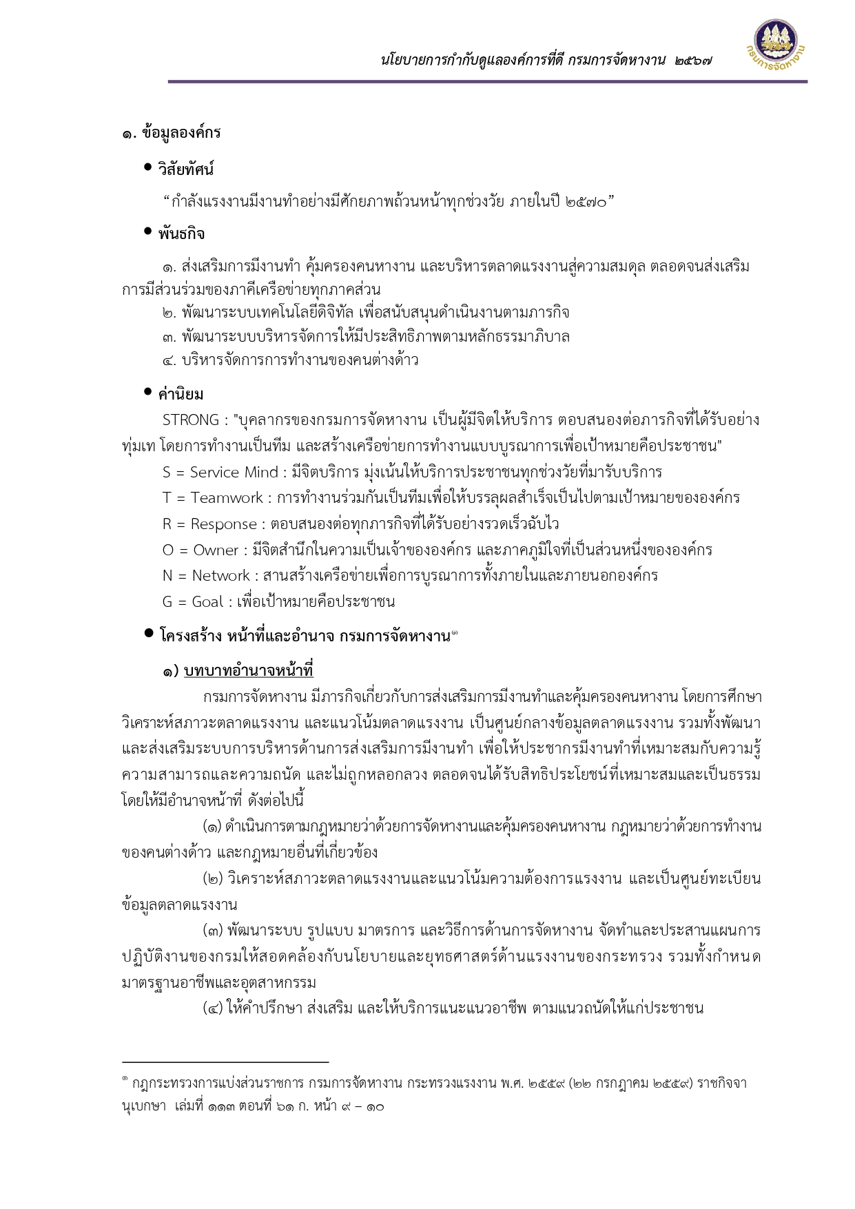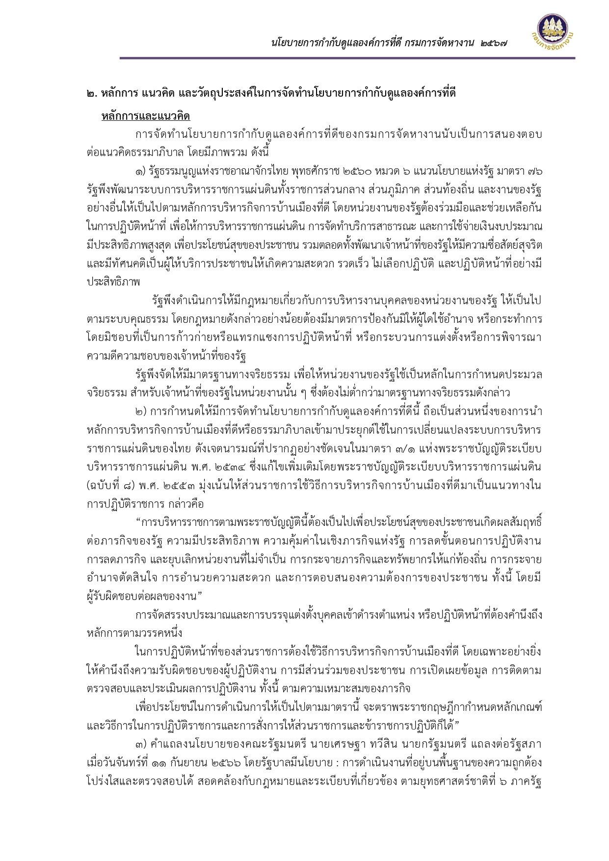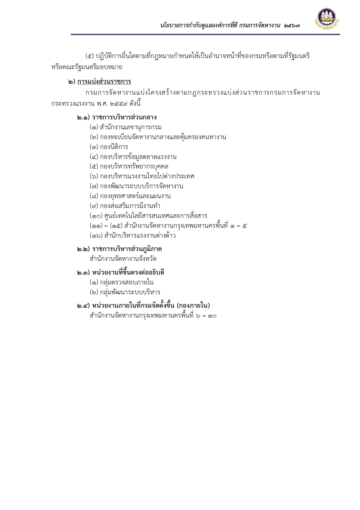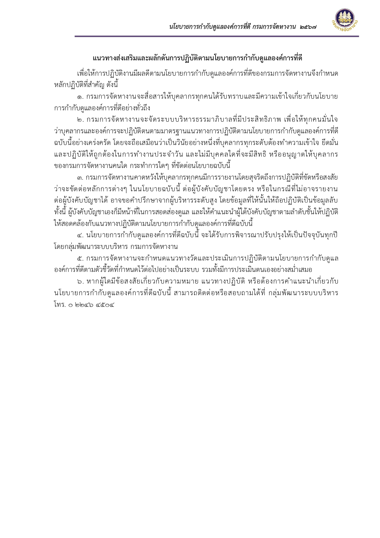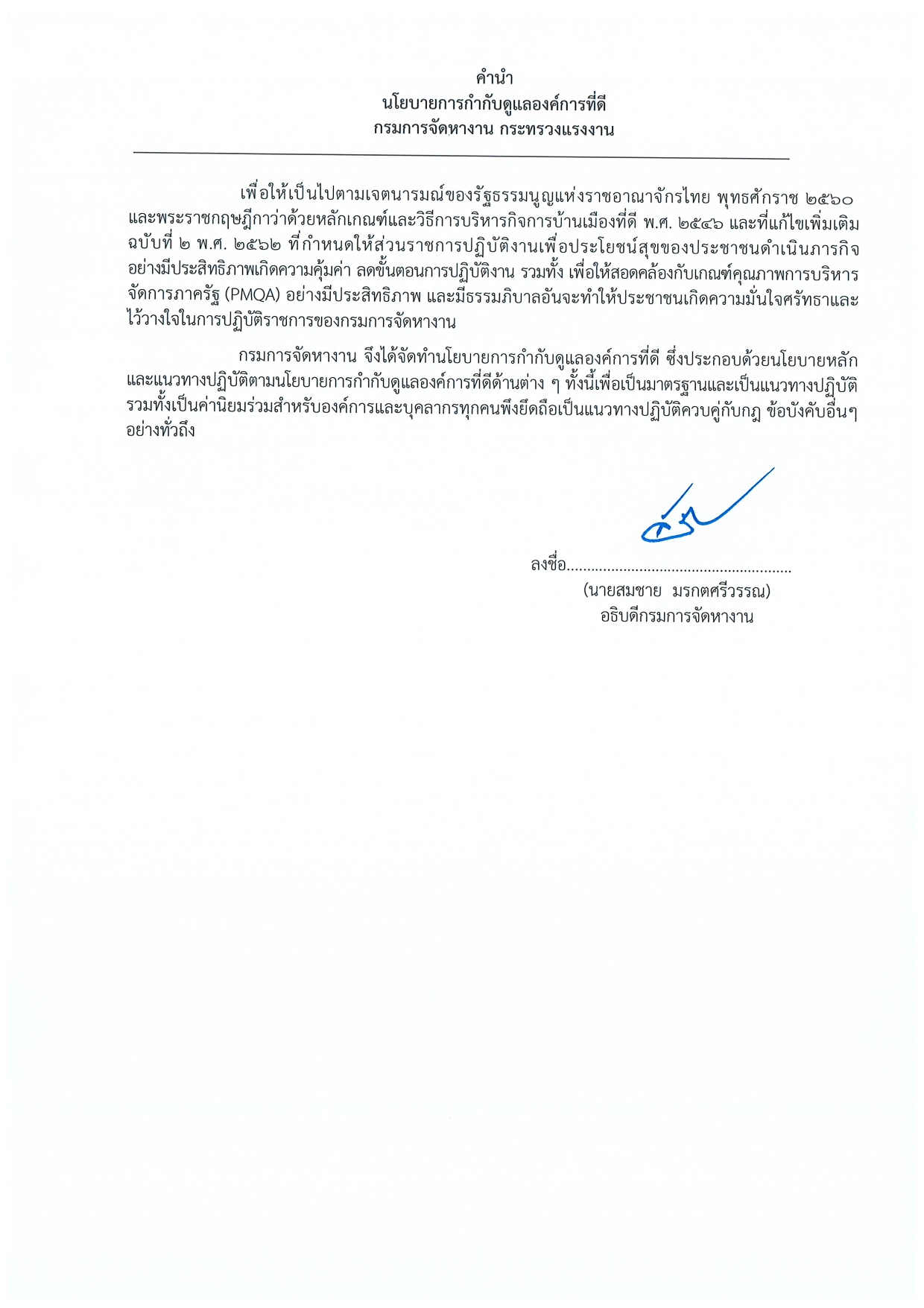 ประกาศเจตนารมณ์และนโยบายการกำกับดูแลองค์การที่ดี กรมการจัดหางาน ประจำปี พ.ศ. ๒๕๖๗