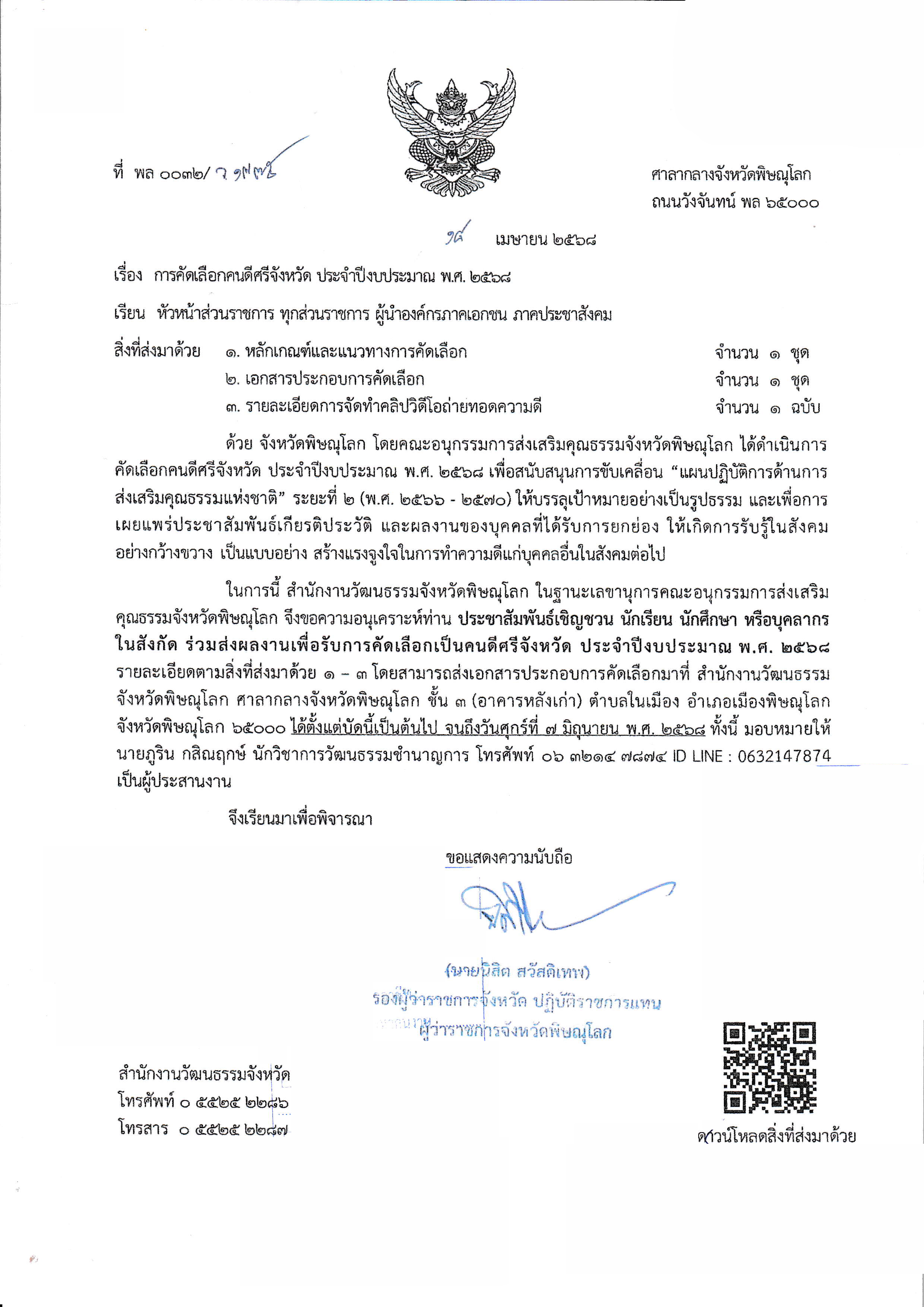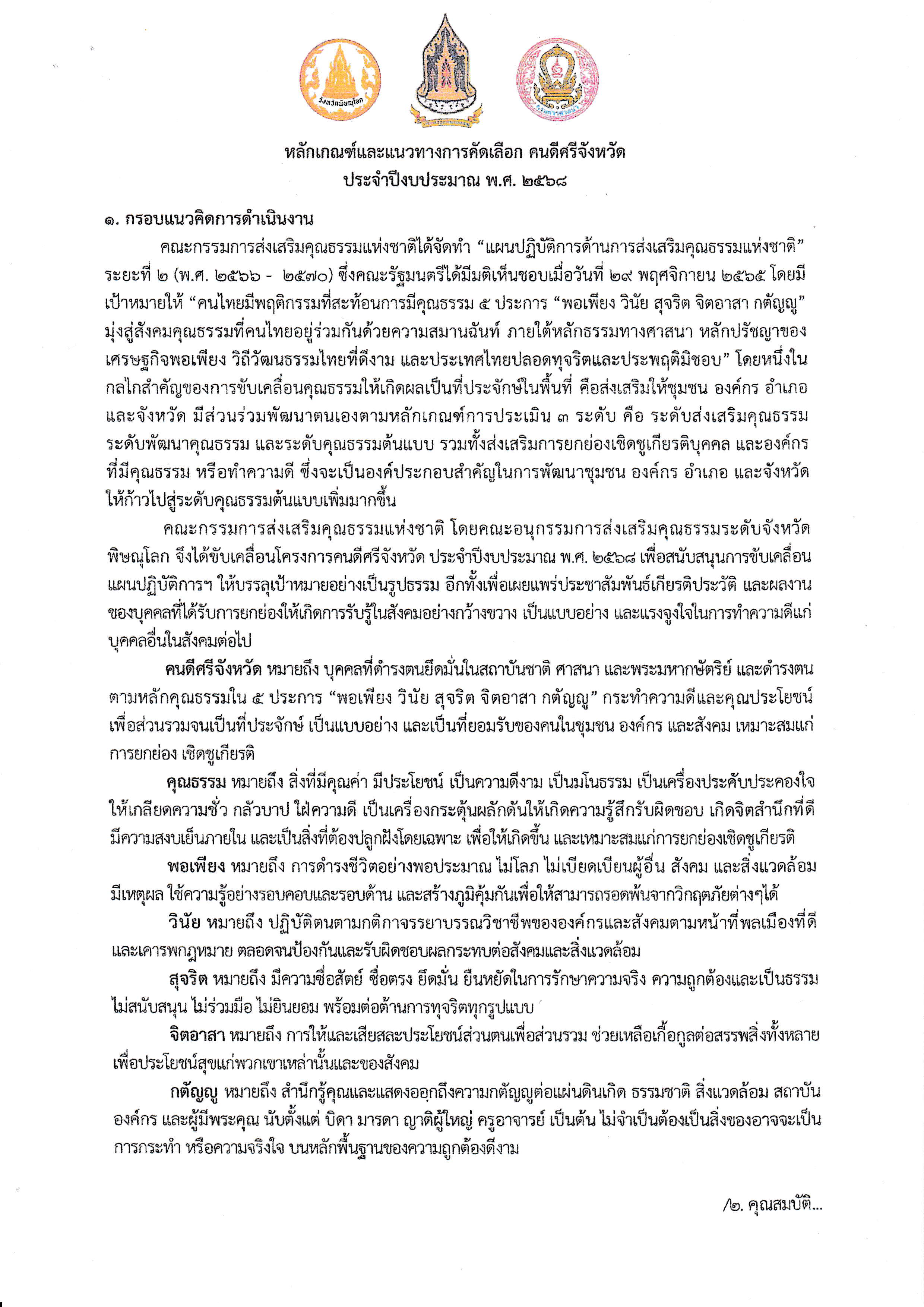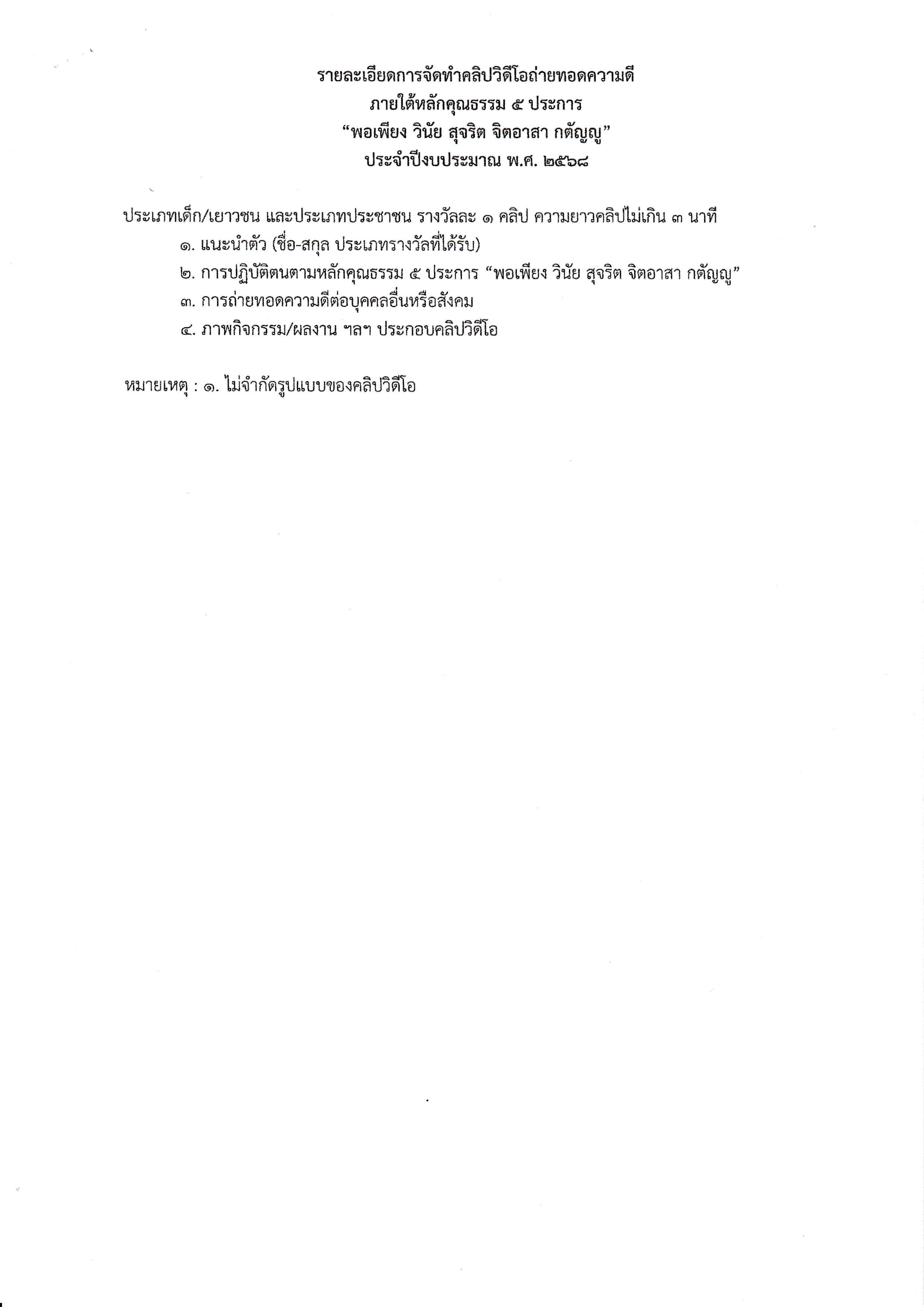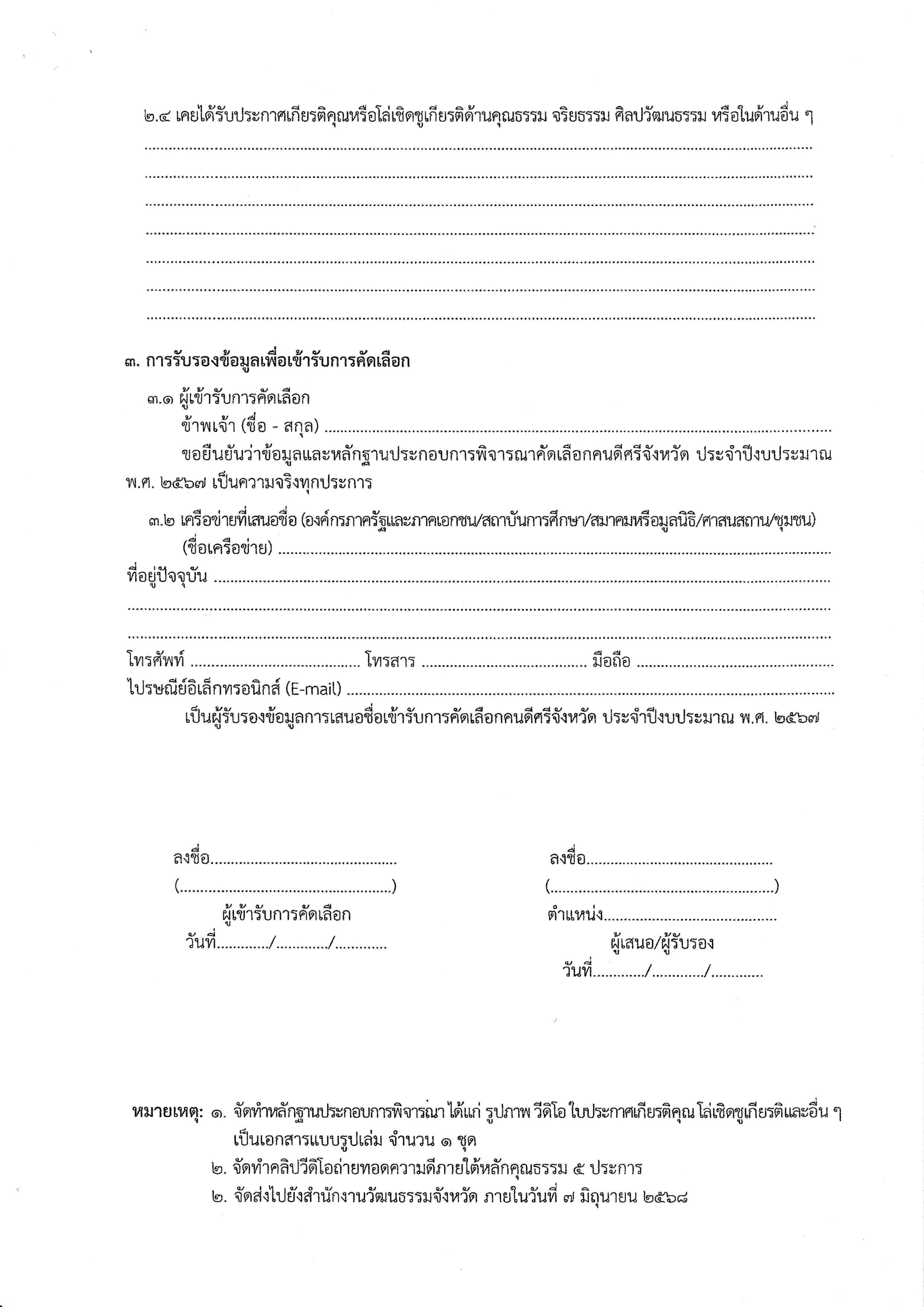 ประกาศ เรื่องการคัดเลือกคนดีศรีจังหวัด ประจำปีงบประมาณ พ.ศ. 2568