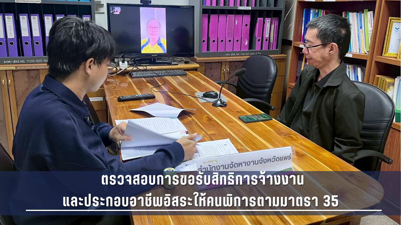 วันที่ 26 มกราคม 2569 นางสาวบุญณิศา เมืองจันทร์ จัดหางานจังหวัดแพร่ มอบหมายเจ้าหน้าที่กลุ่มงานส่งเสริมการมีงานทำ ตรวจสอบการขอรับสิทธิการจ้างงานและประกอบอาชีพอิสระให้คนพิการตามมาตรา 35 กรณีจัดจ้างเหมาช่วงงานหรือจ้างเหมาบริการ จำนวน 8 แห่ง 8 ราย โดยชี้แจงและตรวจสอบฯ ผ่านระบบ Video Conference ณ สำนักงานจัดหางานจังหวัดแพร่ จากการตรวจสอบพบว่าคนพิการมีความพร้อมที่จะรับสิทธิดังกล่าว โดยได้รับมูลค่าสิทธิและมีระยะเวลาดำเนินการตามที่กฎหมายกำหนด