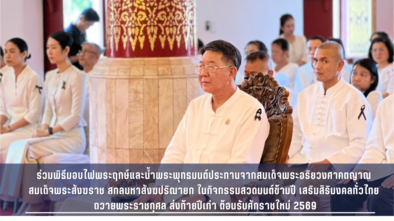 มอบหมายนางสาววาลินี ฟูมั่น เจ้าพนักงานแรงงานปฏิบัติงาน พร้อมเจ้าหน้าที่ ร่วมพิธีมอบไฟพระฤกษ์และน้ำพระพุทธมนต์ประทานจากสมเด็จพระอริยวงศาคตญาณ สมเด็จพระสังฆราช สกลมหาสังฆปริณายก ในกิจกรรมสวดมนต์ข้ามปี เสริมสิริมงคลทั่วไทย ถวายพระราชกุศล ส่งท้ายปีเก่า ต้อนรับศักราชใหม่ 2569 ณ พระอุโบสถ วัดพระบาทมิ่งเมืองวรวิหาร อําเภอเมืองแพร่ จังหวัดแพร่ โดยมีนายสมชัย เลิศประสิทธิพันธ์ ผู้ว่าราชการจังหวัดแพร่ เป็นประธาน