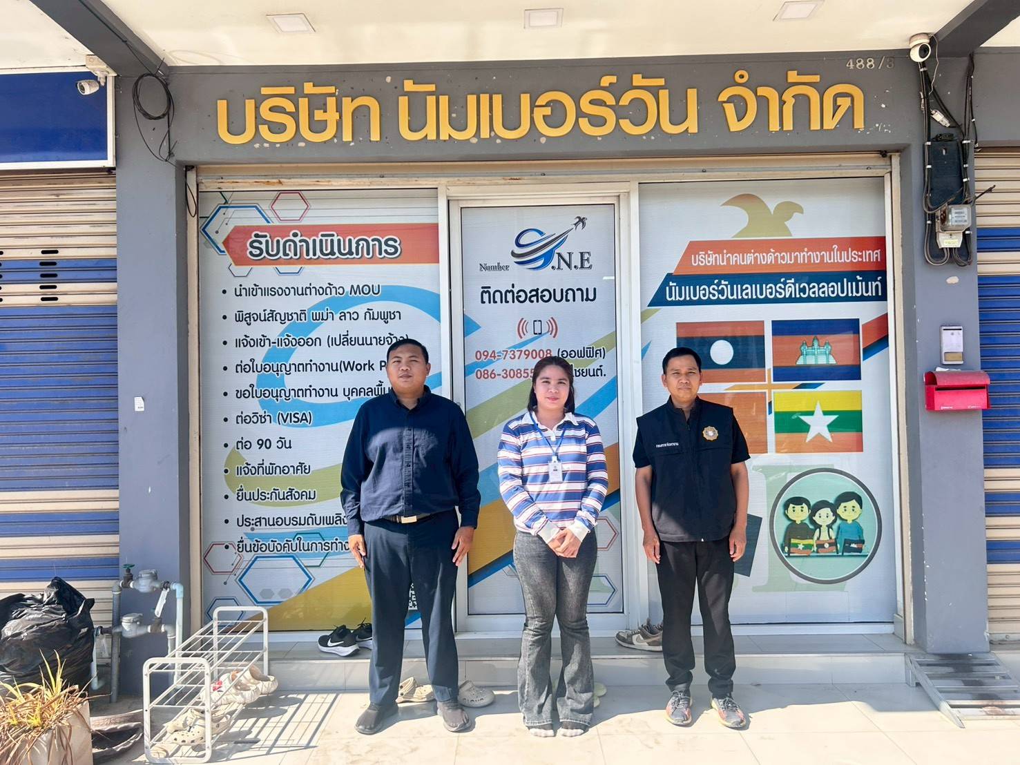 061-3843910 (บริหาร) , 061-3855604 (ต่างด้าว), 061-3854340 (งานในประเทศ)