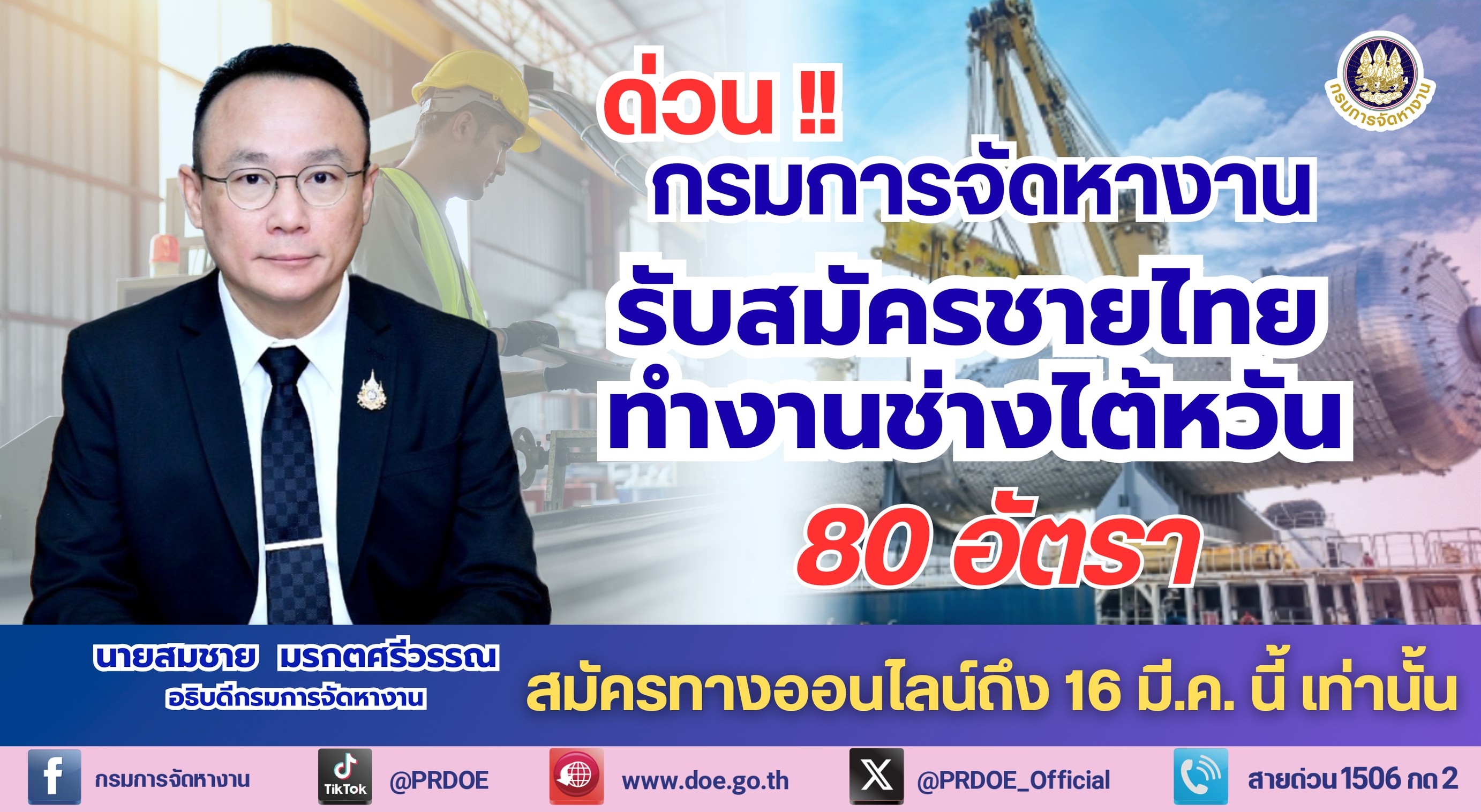 ด่วน! กรมการจัดหางาน เปิด 80 อัตรา ทำงานช่างไต้หวัน สมัครฟรีถึง 16 มี.ค.นี้ RSS
