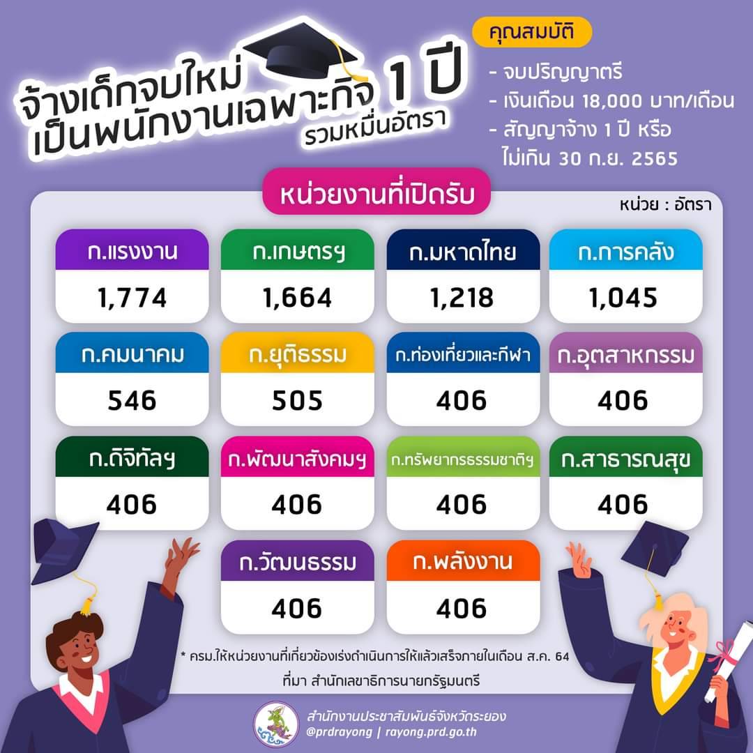2. เป็นประเภทพนักงานราชการ จำนวน 10,000 อัตรา เฉพาะกลุ่มงานบริหารทั่วไป จ้างผู้สำเร็จการศึกษาระดับปริญญาตรี
