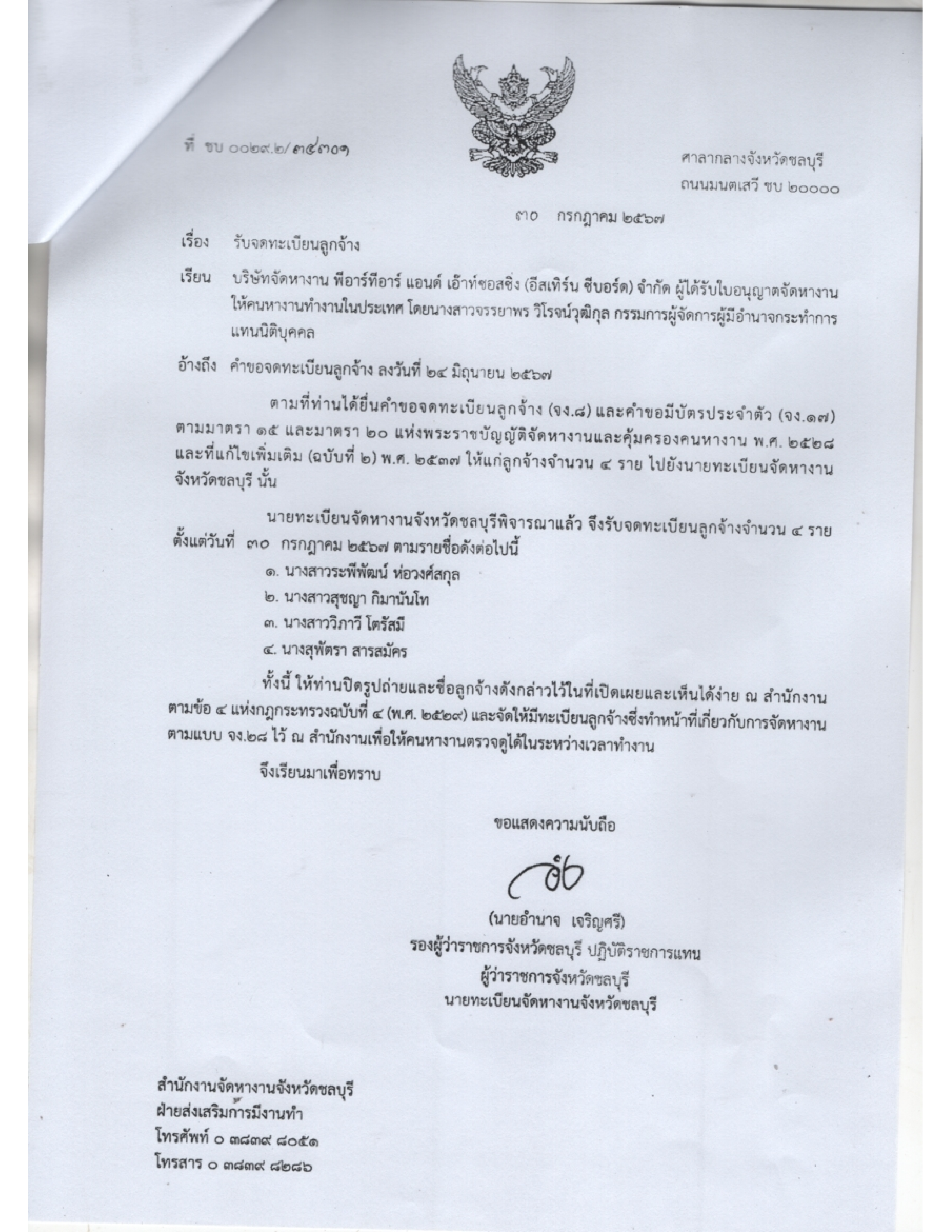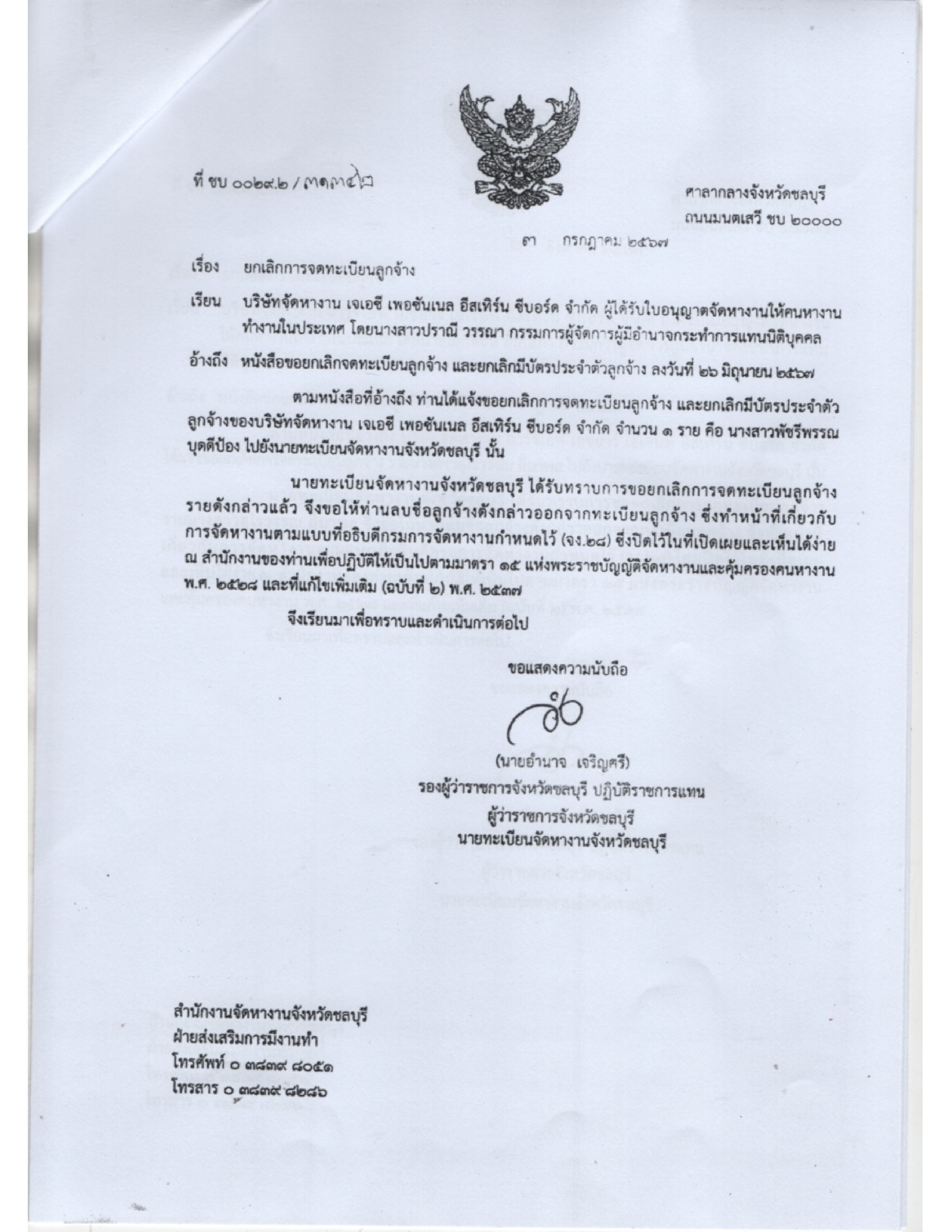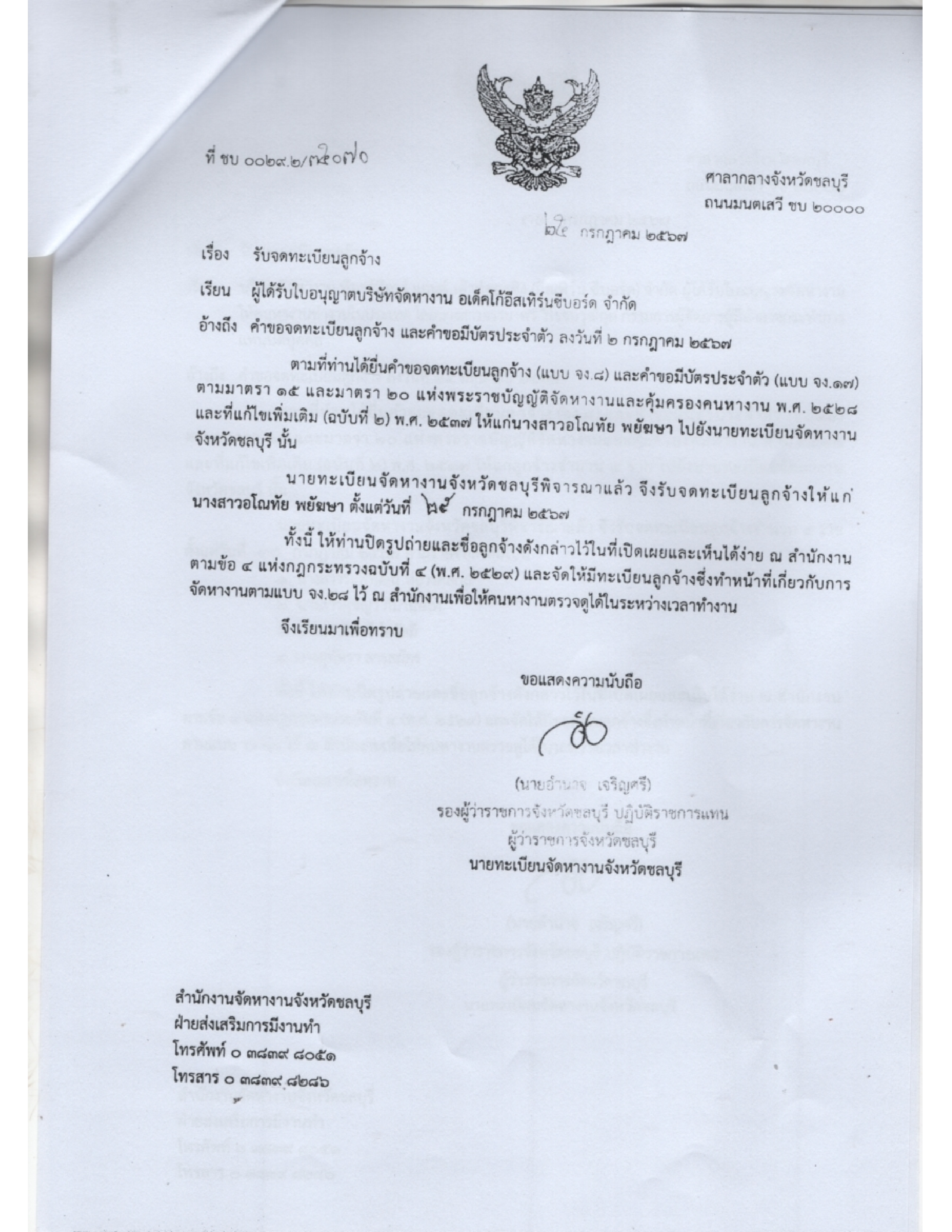 ประชาสัมพันธ์ เรื่อง ข้อมูลเกี่ยวกับใบอุญาตจัดหางาน จำนวน 7 ฉบับ