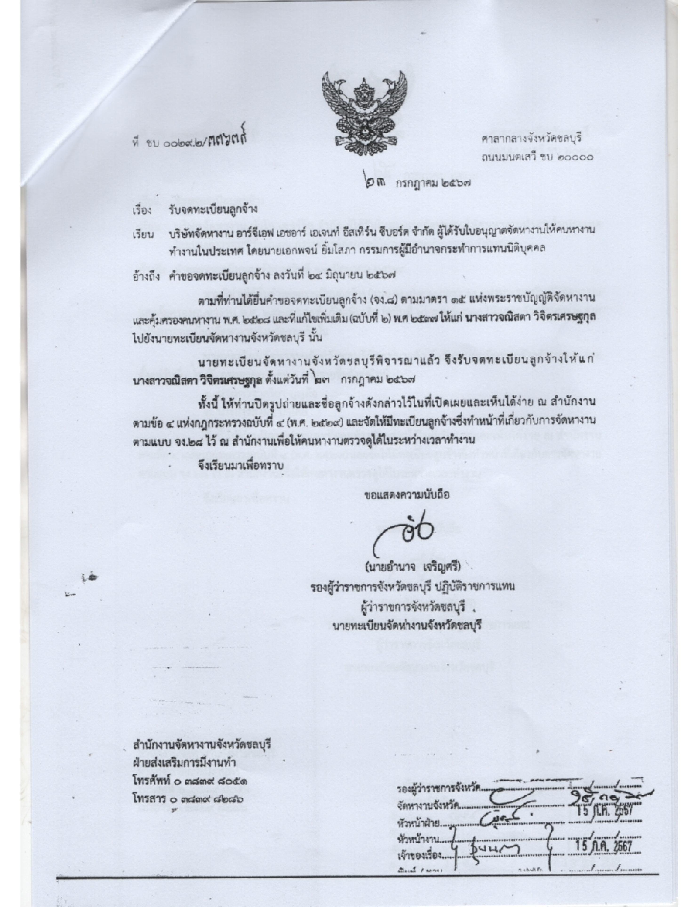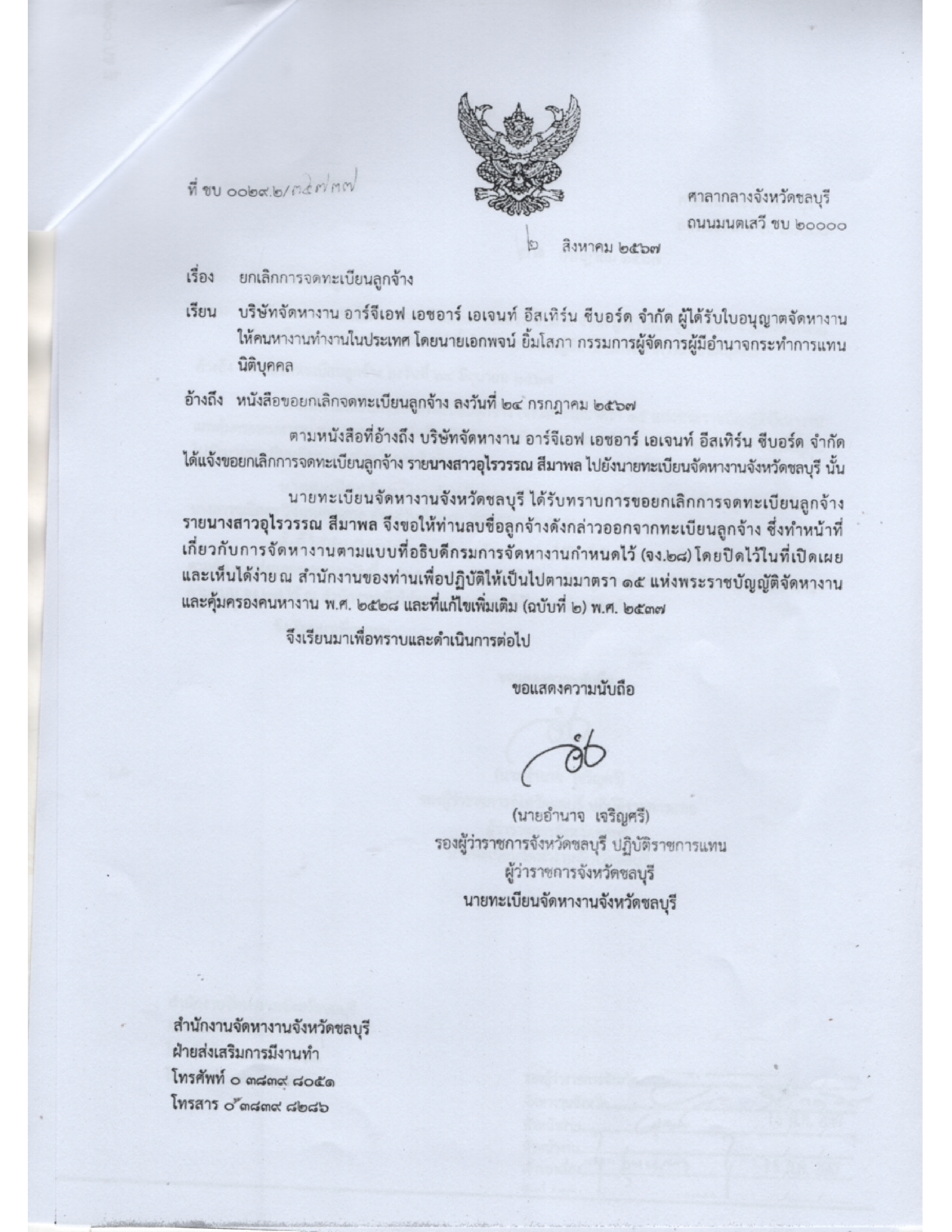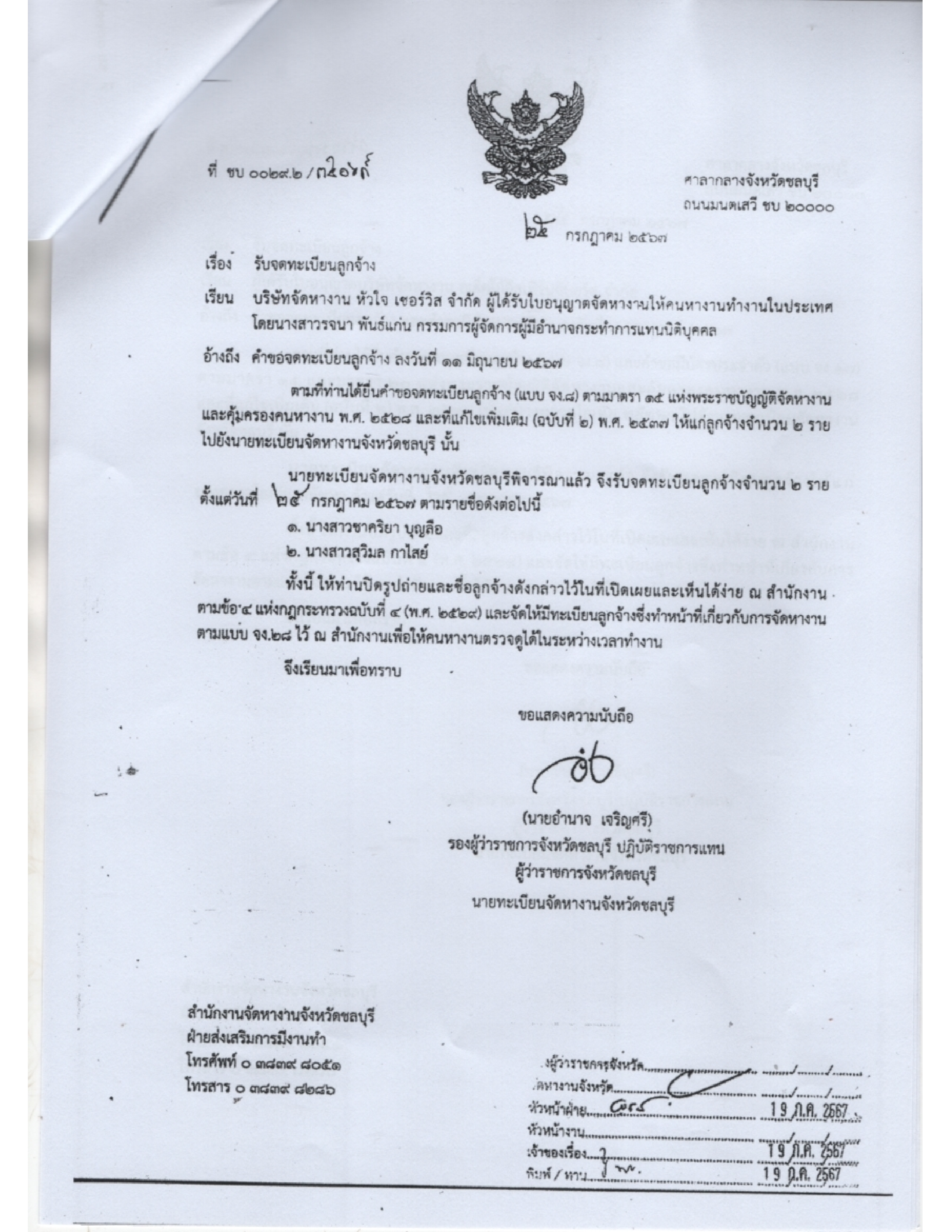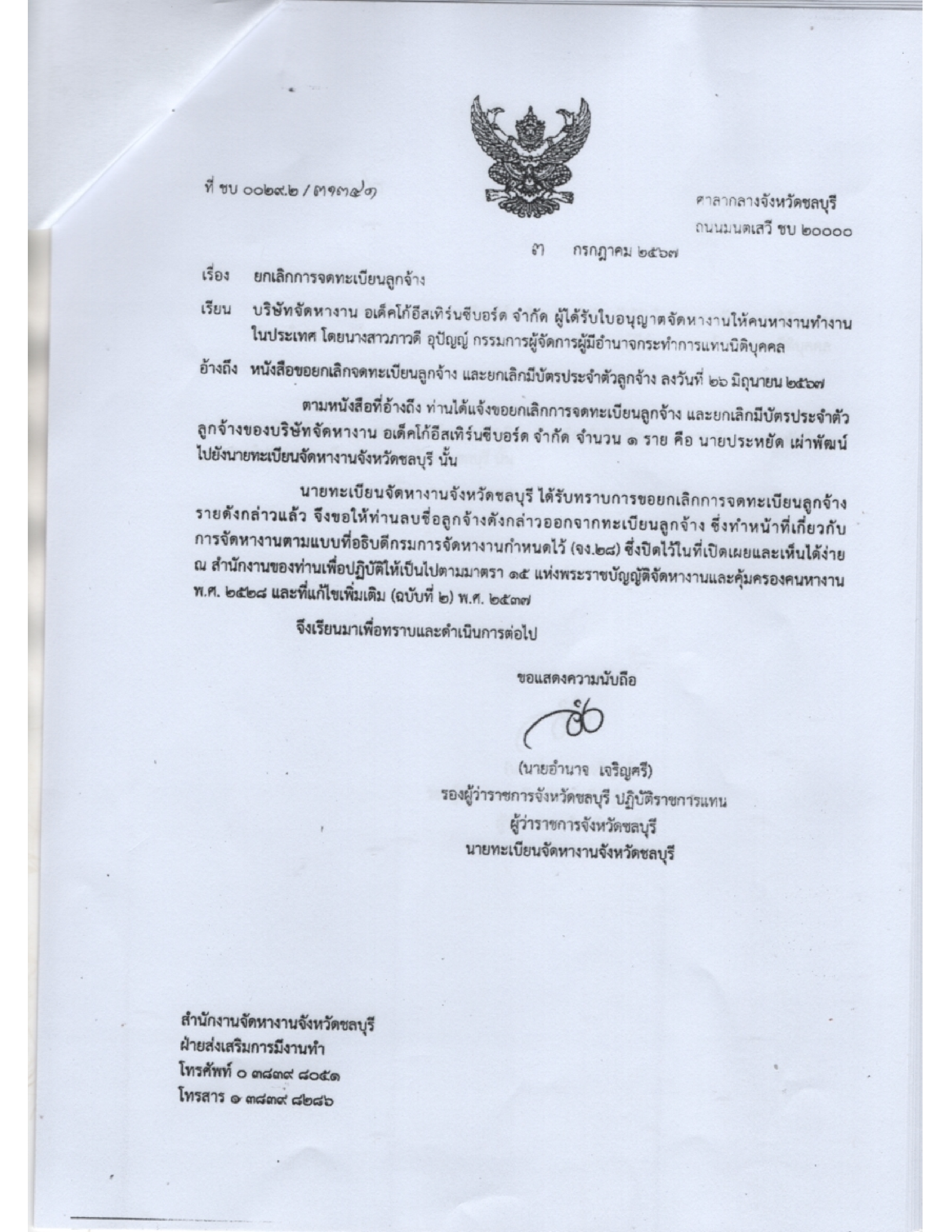 ประชาสัมพันธ์ เรื่อง ข้อมูลเกี่ยวกับใบอุญาตจัดหางาน จำนวน 7 ฉบับ