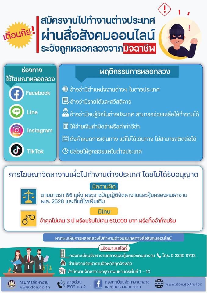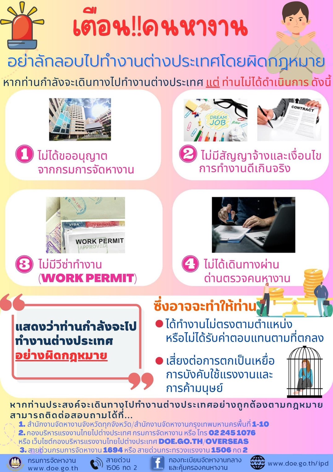 เจ้าหน้าที่แนะนำให้สมัครไปทำงานต่างประเทศกับบริษัทจัดหางานที่ได้ขึ้นทะเบียนไว้กับกรมการจัดหางาน และให้ไปทำงานต่างประเทศถูกต้องตามกฎหมาย ซึ่งมี 5 วิธี