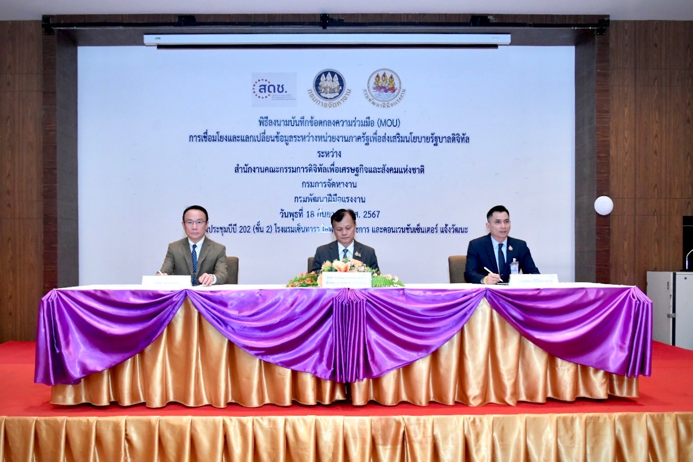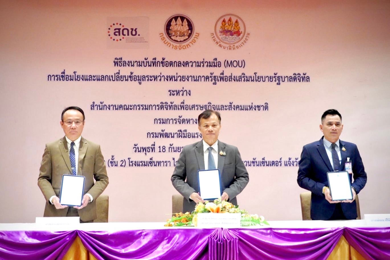 อธิบดีกรมการจัดหางาน ลงนามบันทึกข้อตกลงความร่วมมือ (MOU) การเชื่อมโยงและแลกเปลี่ยนข้อมูลระหว่างหน่วยงานภาครัฐ เพื่อส่งเสริมนโยบายรัฐบาลดิจิทัล