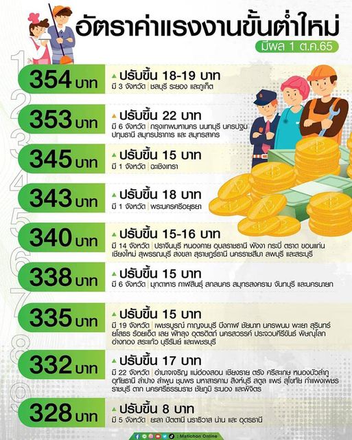 ส่วนกรุงเทพและปริมณฑล อยู่ที่ 353 บาท กระทรวงแรงงาน สรุปผลเสนอ ครม.พิจารณาโดยเร็วที่สุดเพื่อให้มีผลใช้บังคับตั้งแต่วันที่ 1 ตุลาคม 2565 เป็นต้นไป