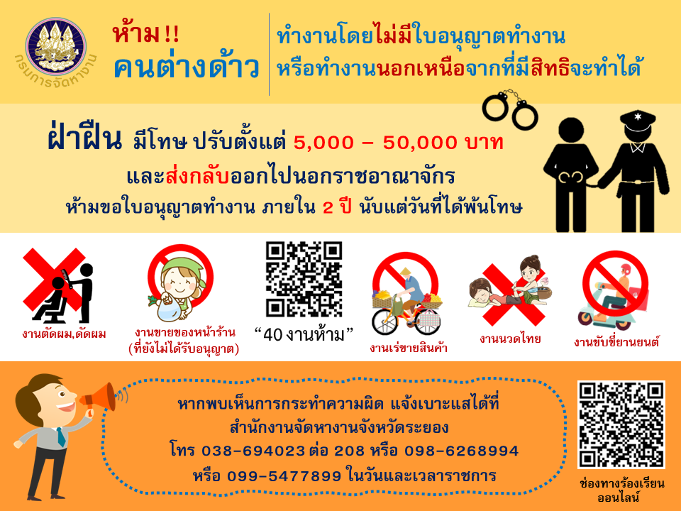 - ประกาศกระทรวงแรงงาน เรื่อง กำหนดงานที่ห้ามคนต่างด้าวทำ