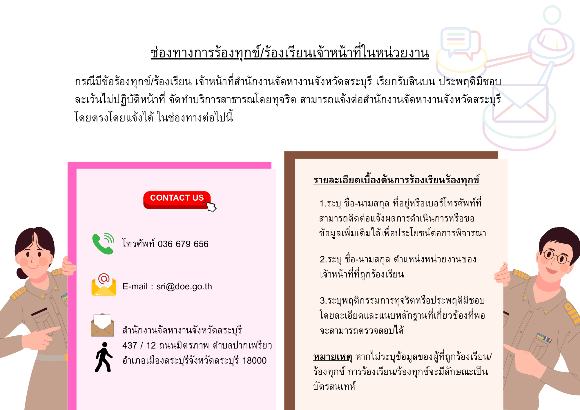 ช่องทางการแจ้งเรื่องร้องเรียนการทุจริตและประพฤติมิชอบ