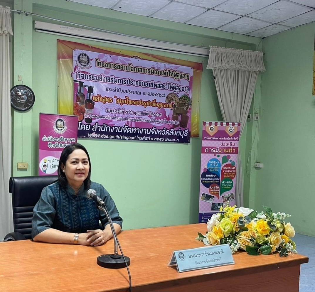 วันที่ 5 - 6 กุมภาพันธ์ 2568 สำนักงานจัดหางานจังหวัดสิงห์บุรี นำโดย นางประภา ธีระเดชะชาติ จัดหางานจังหวัดสิงห์บุรี พร้อมด้วยเจ้าหน้าที่สำนักงานจัดหางานจังหวัดสิงห์บุรี จัดฝึกอบรมอาชีพตามโครงการขยายโอกาสการมีงานทำให้ผู้สูงอายุ