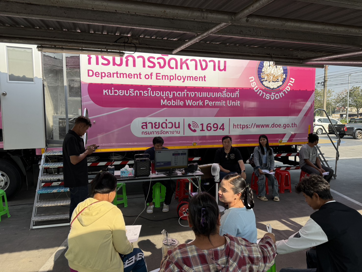 วันพฤหัสบดีที่ 22 มกราคม 2569 นางประภา ธีระเดชะชาติ จัดหางานจังหวัดสิงห์บุรี มอบหมายให้ นางสาววิไลลักษณ์ สร้อยบาง ตำแหน่งนักวิชาการแรงงานชำนาญการ และนายภวิศ หาวารี เจ้าหน้าที่ฝ่ายควบคุมการทำงานคนต่างด้าว ลงพื้นที่ดำเนินการให้คำแนะนำเเละให้บริการนายจ้างในการทำใบอนุญาตทำงานของคนต่างด้าวกับหน่วยบริการผลิตใบอนุญาตทำงานเคลื่อนที่ ณ ห้างโลตัสสิงห์บุรี ตำบลม่วงหมู่ อำเภอเมือง จังหวัดสิงห์บุรี มีต่างมาทำบัตรจำนวน 63 คน