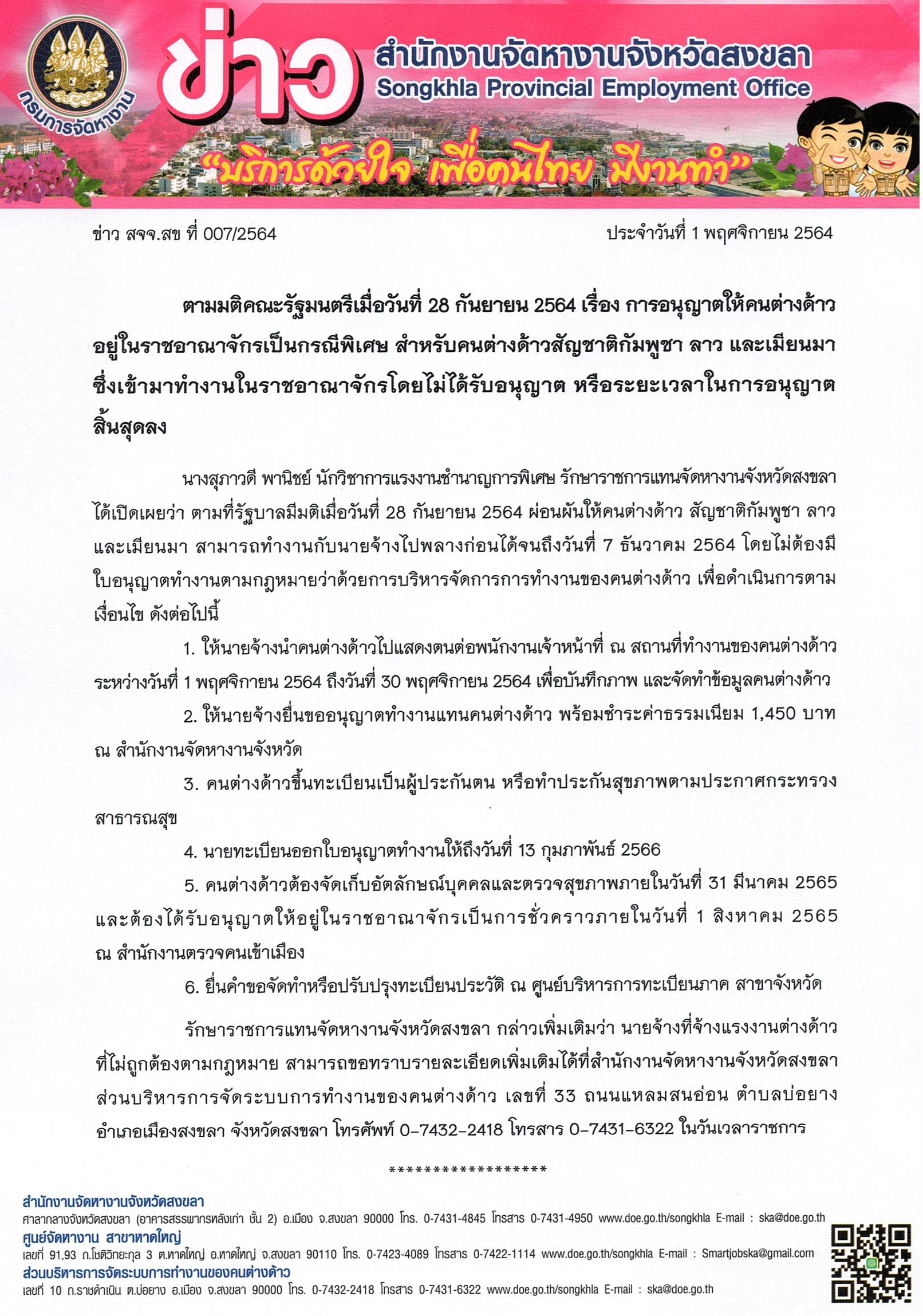 แบบการสำรวจข้อมูลคนต่างด้าว ตามมติคณะรัฐมนตรีเมื่อวันที่ 28 กันยายน พ.ศ.2564