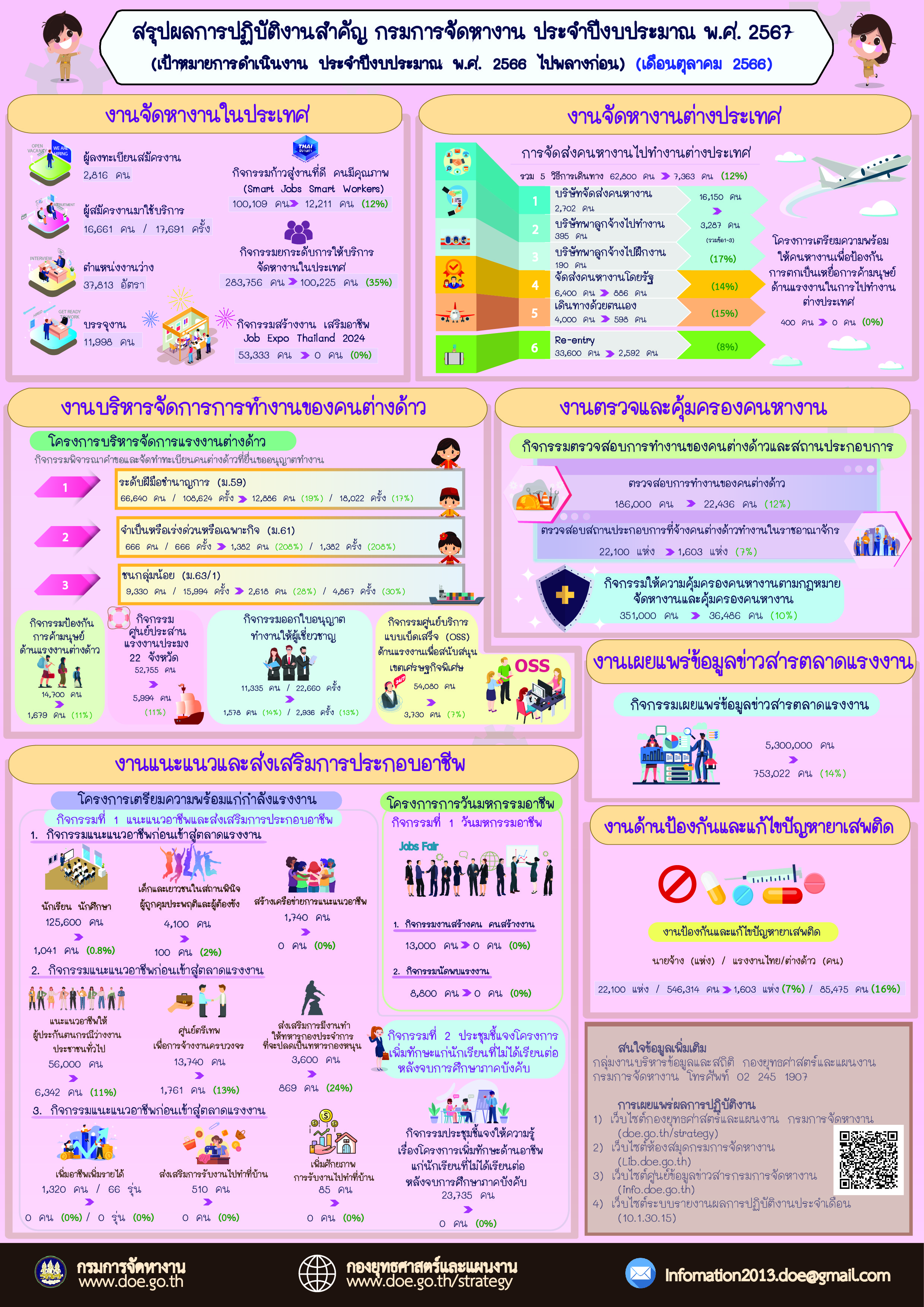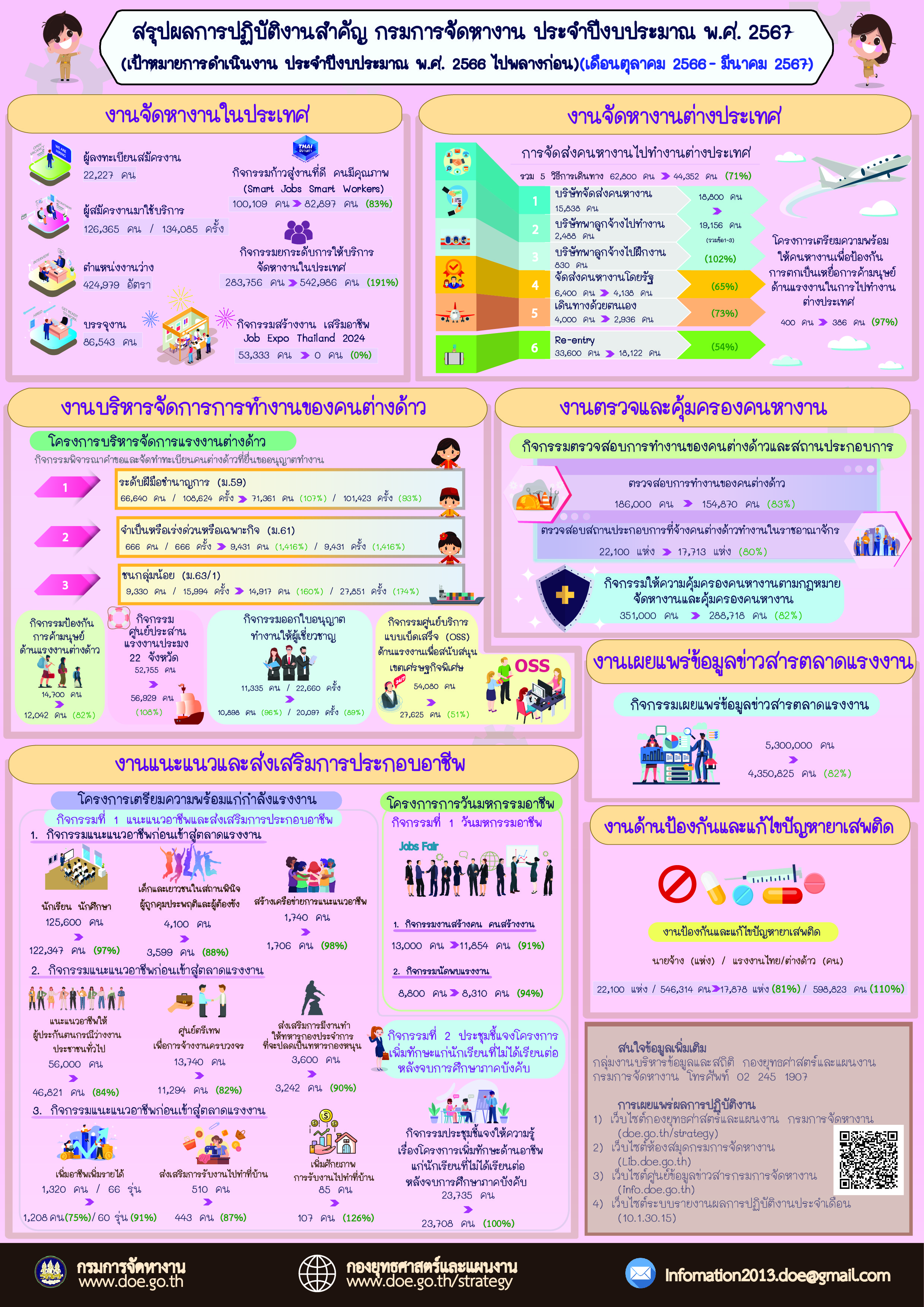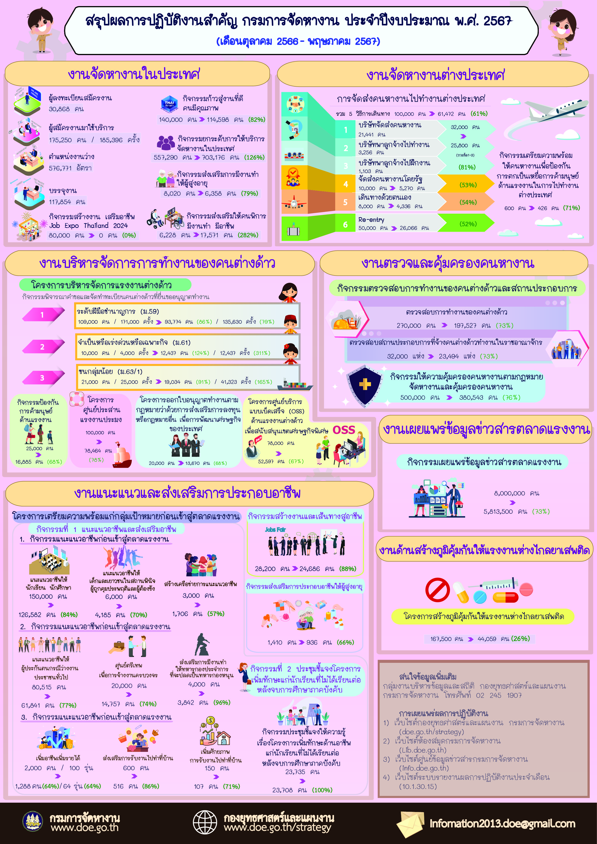 Infographic สรุปผลการปฏิบัติงานสำคัญ กรมการจัดหางาน ประจำปีงบประมาณ 2567