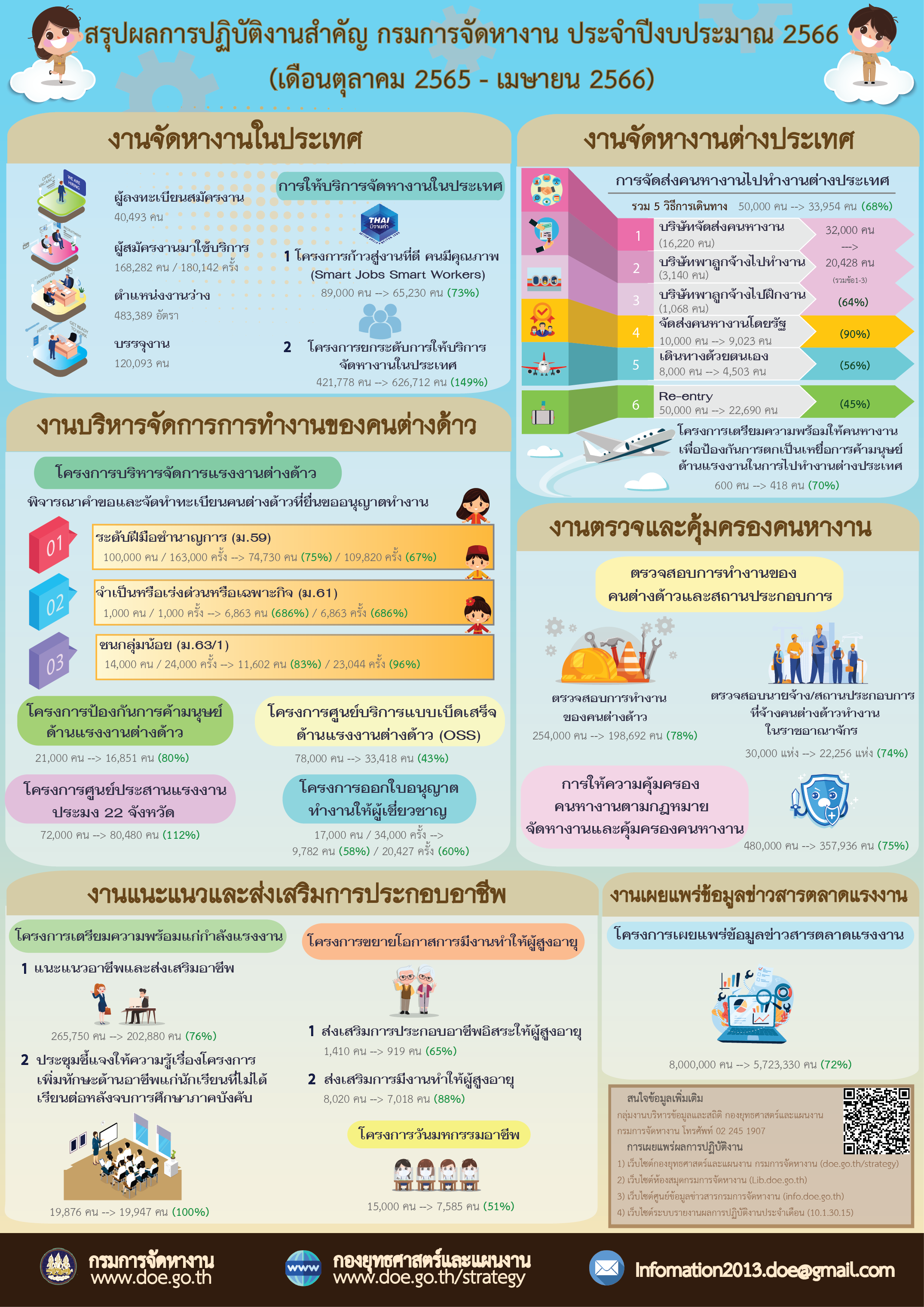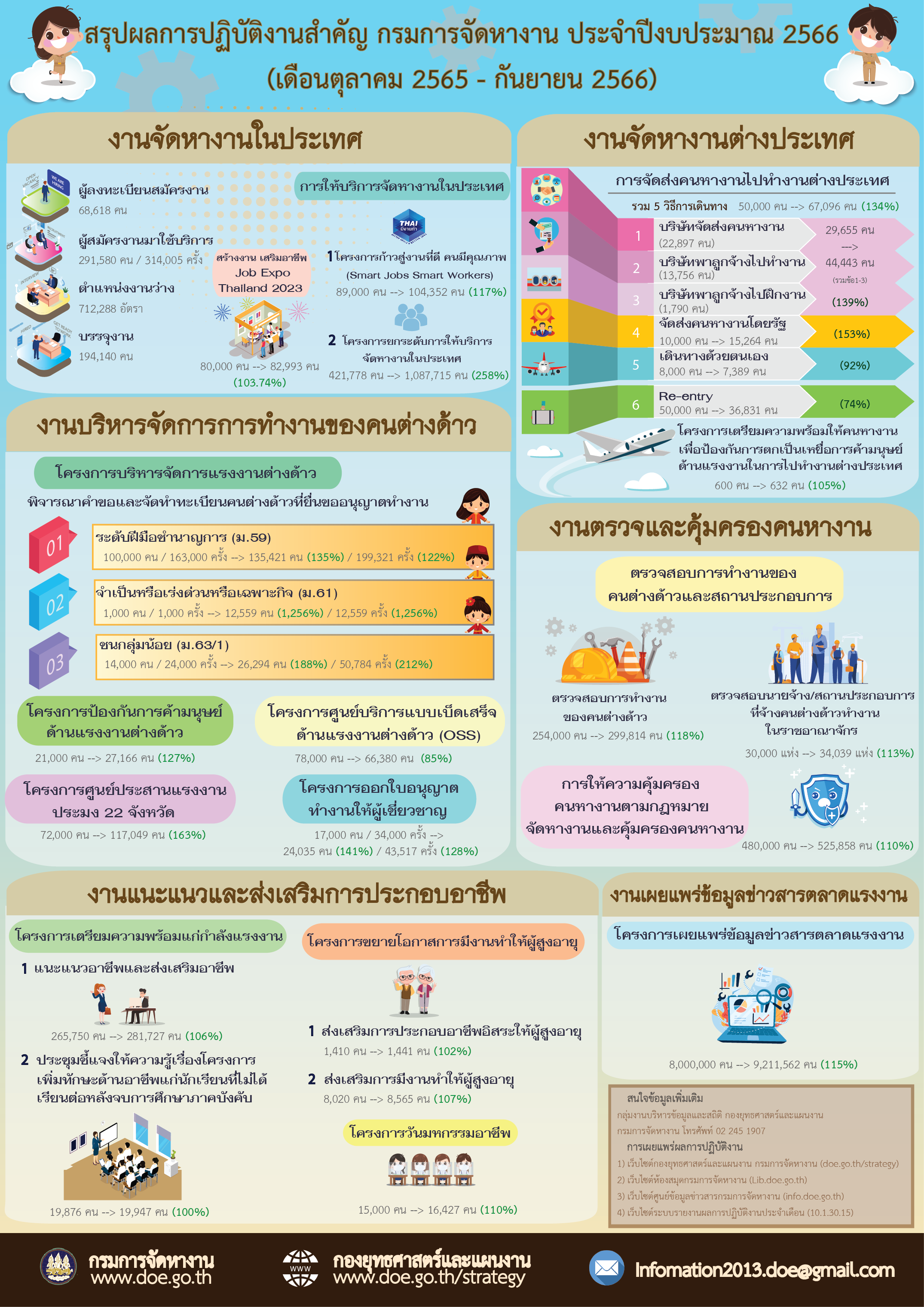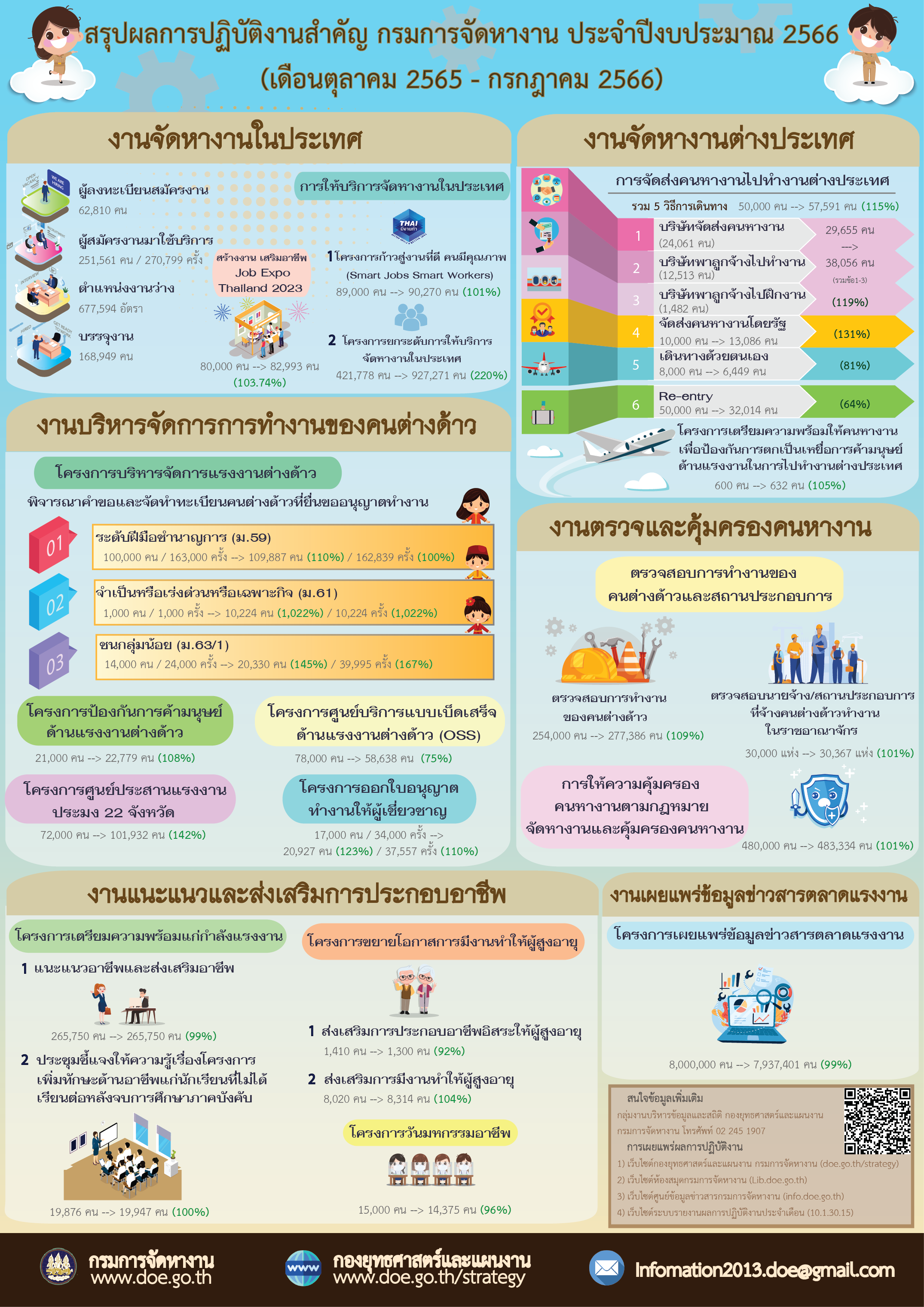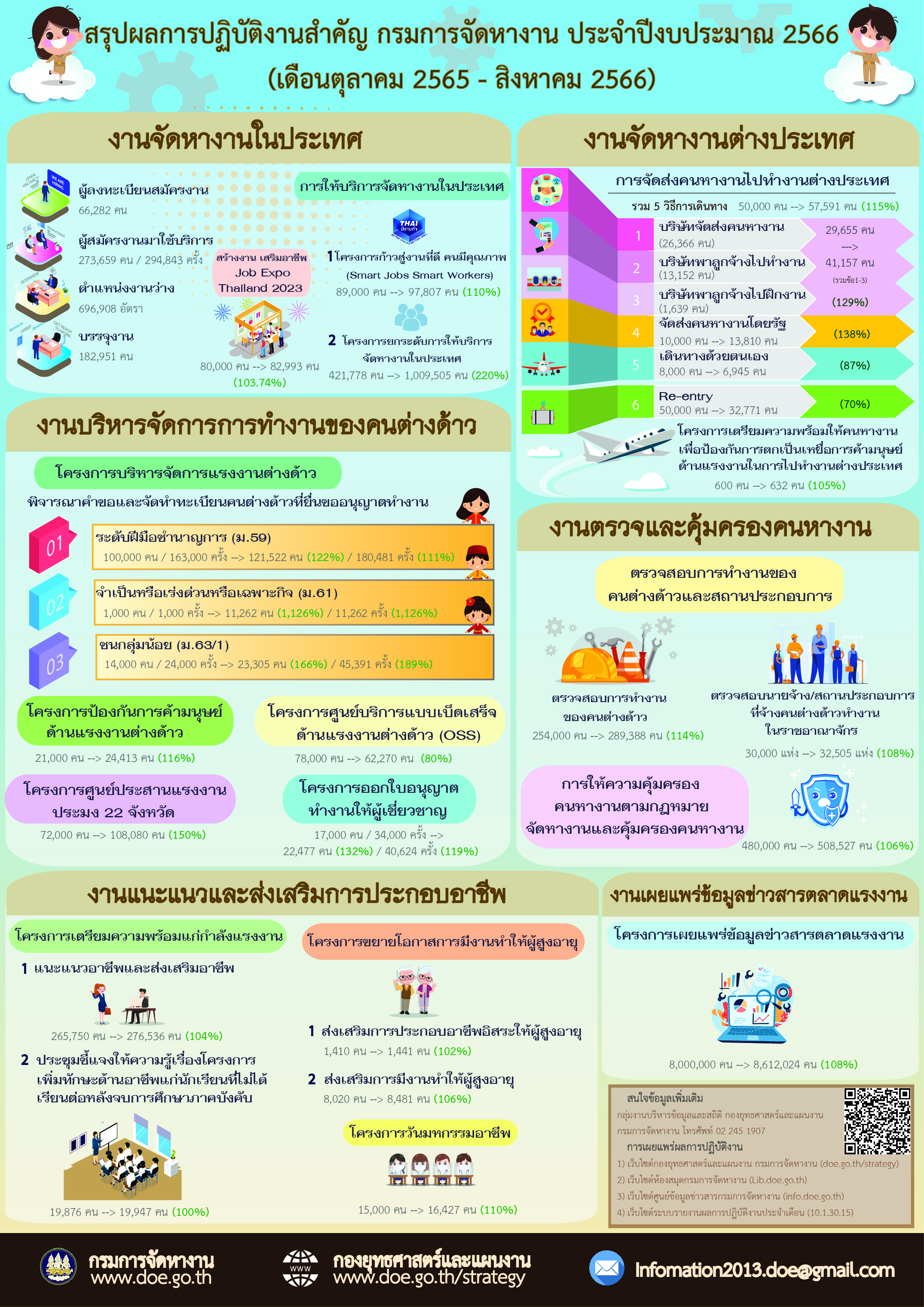 Infographic สรุปผลการปฏิบัติงานสำคัญ กรมการจัดหางาน ประจำปีงบประมาณ 2567
