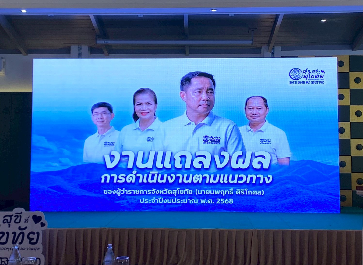 วันที่ 29 กันยายน 2568 เวลา 13.00 น. นายอนุพงค์ ลีละประถม จัดหางานจังหวัดสุโขทัย ร่วมงานแถลงผลการดำเนินงานของผู้ว่าราชการจังหวัดสุโขทัย (นายนพฤทธิ์ ศิริโกศล) ประจำปีงบประมาณ พ.ศ. 2568 ตามเจตนารมณ์ “สุโข สุขี ที่สุโขทัย” ณ โรงแรมสุโขทัย เทรเชอร์ รีสอร์ท แอนด์ สปา ตำบลบ้านกล้วย อำเภอเมืองสุโขทัย จังหวัดสุโขทัย โดยมี นายนพฤทธิ์ ศิริโกศล ผู้ว่าราชการจังหวัดสุโขทัย เป็นประธานในพิธี
