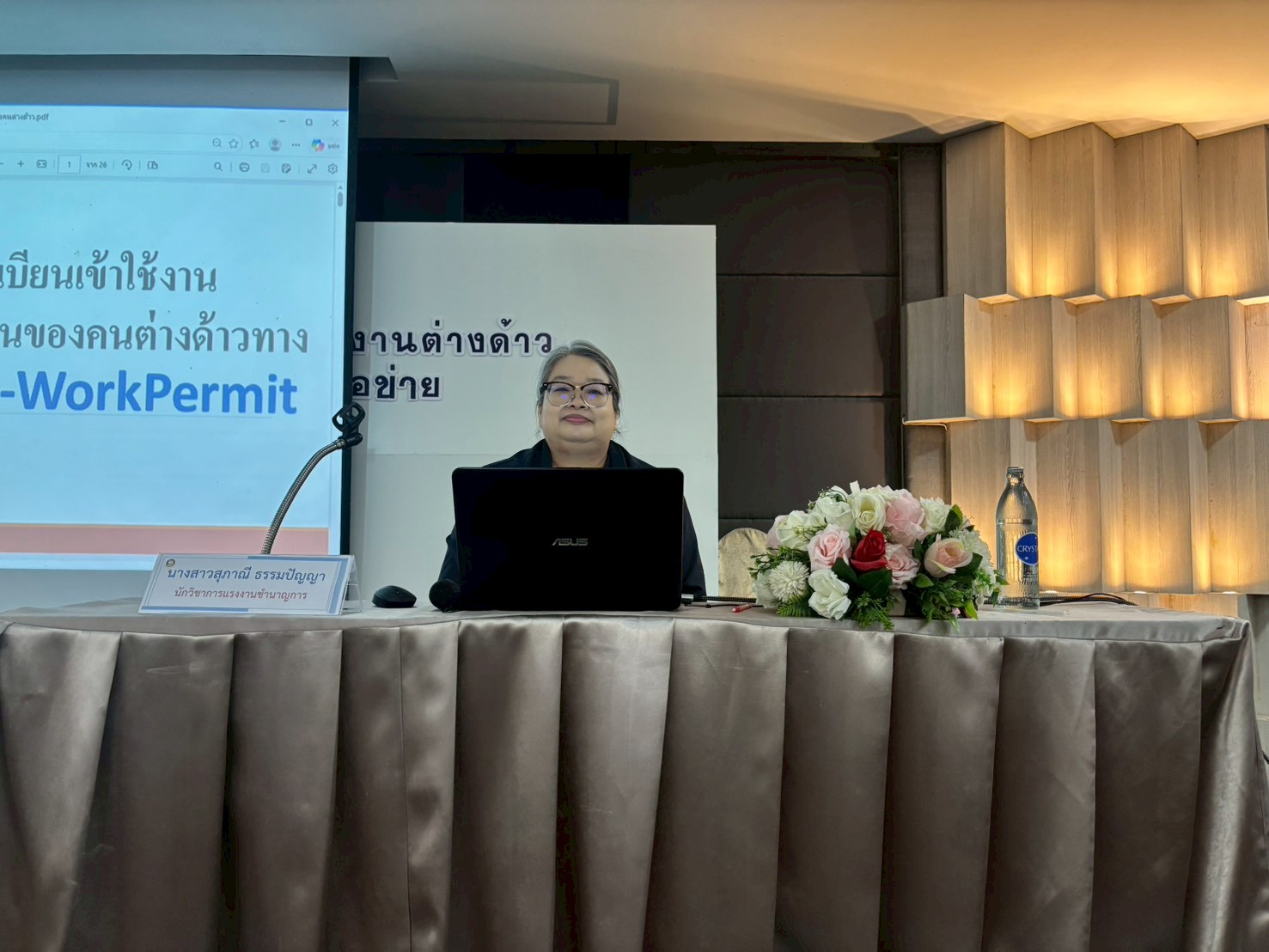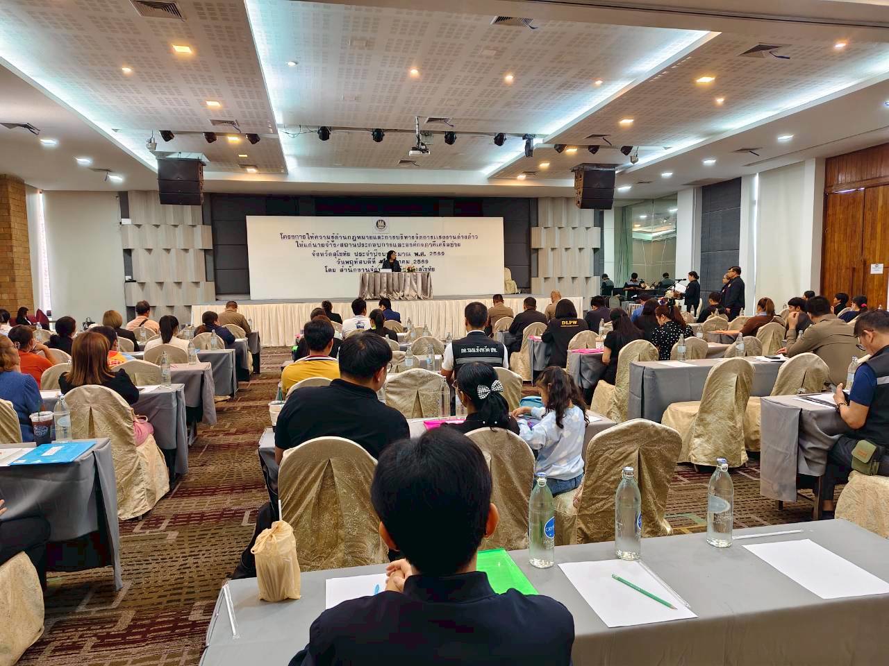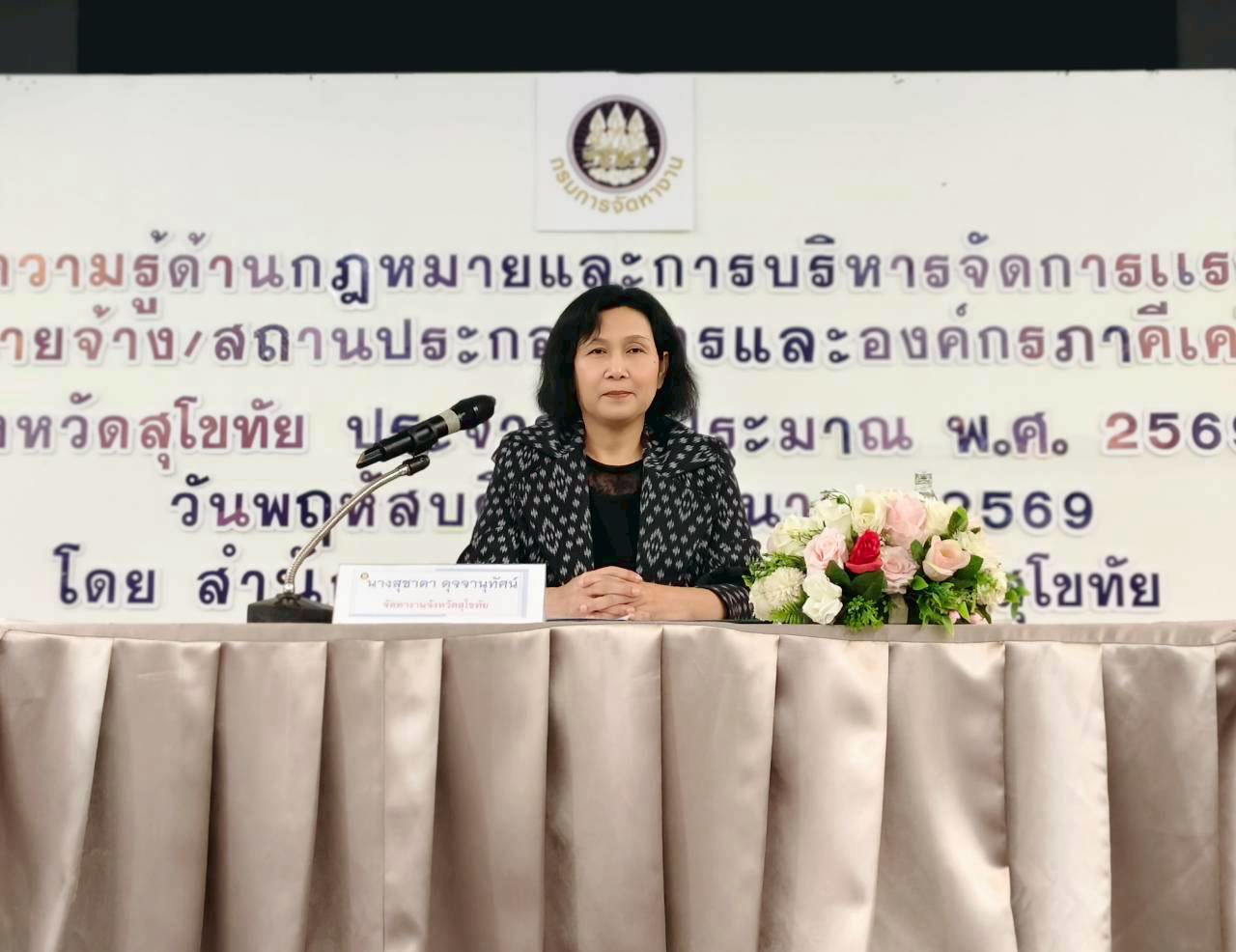 วันพฤหัสบดีที่ 19 มีนาคม 2569 สำนักงานจัดหางานจัดหางานจังหวัดสุโขทัย ดำเนินการจัดประชุมชี้แจงโครงการให้ความรู้ด้านกฎหมายและการบริหารจัดการแรงงานต่างด้าวให้นายจ้าง/สถานประกอบการและองค์กรภาคีเครือข่าย จังหวัดสุโขทัย ประจำปีงบประมาณ พ.ศ. 2569 ณ โรงแรมสุโขทัย เทรเชอร์ รีสอร์ท แอนด์ สปา ตำบลบ้านกล้วย อำเภอเมืองสุโขทัย จังหวัดสุโขทัย ผู้เข้าร่วมประชุมประกอบด้วยนายจ้าง/สถานประกอบการ และเจ้าหน้าที่จากหน่วยงานภาคีเครือข่าย จำนวน 110 คน โดยมีนางสุชาดา ดุจจานุทัศน์ จัดหางานจังหวัดสุโขทัย เป็นประธานในพิธีเปิดการประชุม