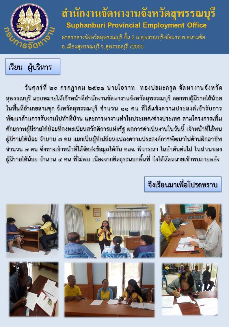 ออกพบผู้มีรายได้น้อยในพื้นที่อำเภอสามชุก จังหวัดสุพรรณบุรี
