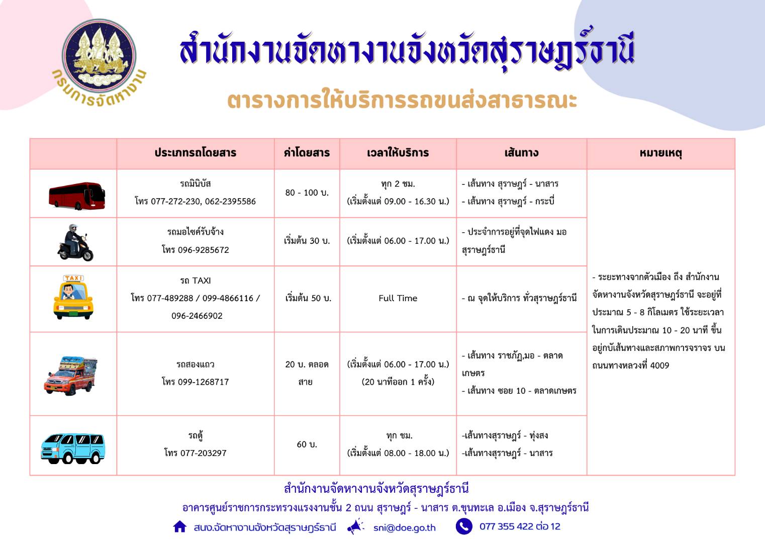 ตารางการให้บริการรถขนส่งสาธารณะ