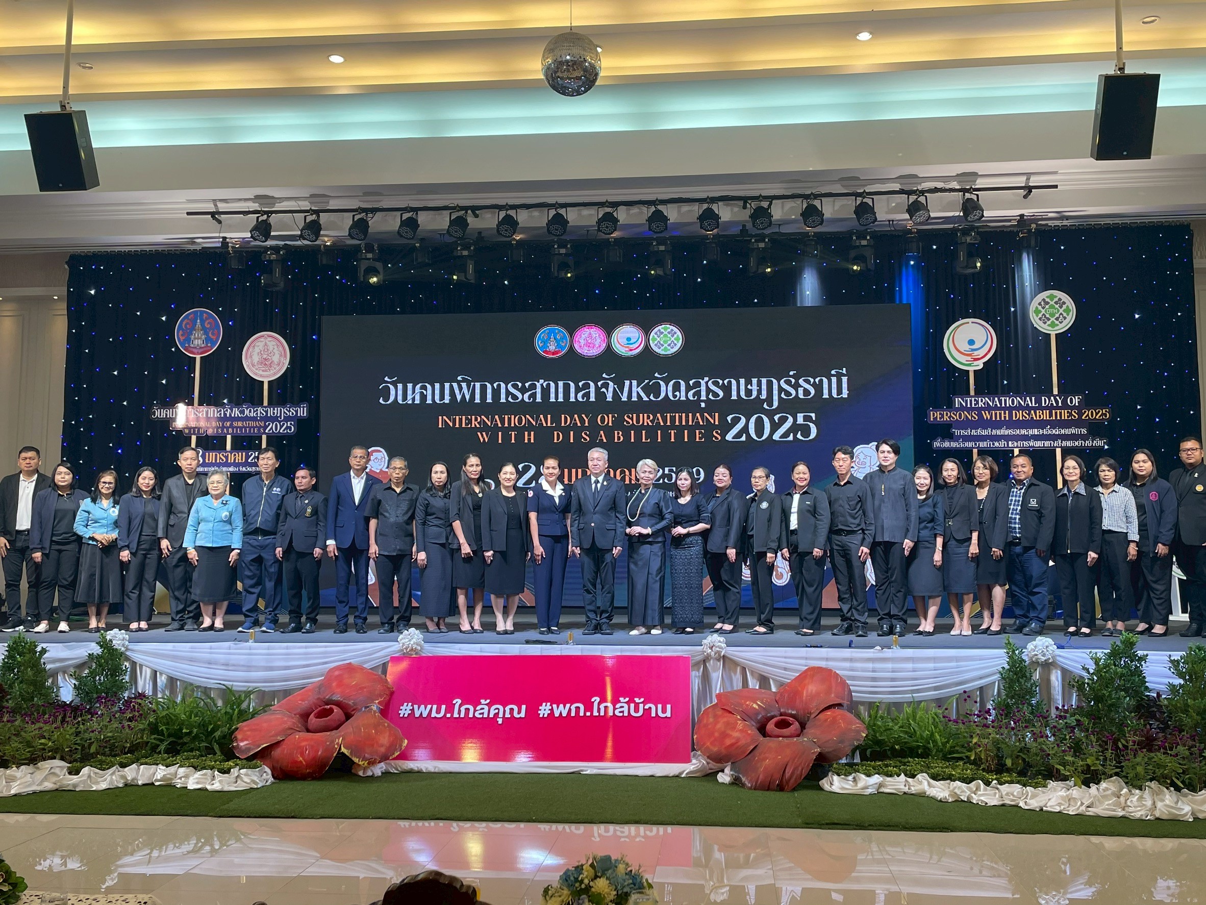วันที่ 28 มกราคม 2569 นางสาวอัญณิกา ทองเปลว จัดหางานจังหวัดสุราษฎร์ธานี พร้อมด้วยเจ้าหน้าที่เข้าร่วมเป็นเกียรติและจัดบูธสนับสนุนการจัดงานวันคนพิการสากลจังหวัดสุราษฎร์ธานี ประจำปี พ.ศ. 2568 ณ โรงแรมนิภาการ์เด้น อำเภอเมืองสุราษฎร์ธานี จังหวัดสุราษฎร์ธานี โดยมีนายบันดาล สถิรชวาล รองผู้ว่าราชการจังหวัดสุราษฎร์ธานี เป็นประธานในพิธีเปิด