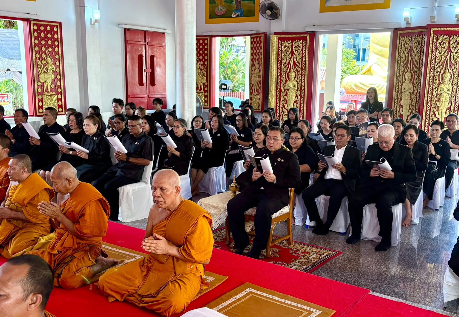 วันศุกร์ที่ 30 มกราคม 2569 เวลา 14.00 น. นางสาวอัญฒิกา ทองเปลว จัดหางานจังหวัดสุราษฎร์ธานี ร่วมพิธีสวดพระพุทธมนต์และเจริญจิตภาวนาอุทิศถวายพระราชกุศลแด่ สมเด็จพระนางเจ้าสิริกิติ์ พระบรบราชินีนาถ พระบรมราชชนนีพันปีหลวง ณ วัดไตรธรรมาราม พระอารามหลวง อำเภอเมืองสุราษฎร์ธานี จังหวัดสุราษฎร์ธานี โดย นายจุมพฎ วรรณฉัตรสิริ ผู้ว่าราชการจังหวัดสุราษฎร์ธานี เป็นประธาน
