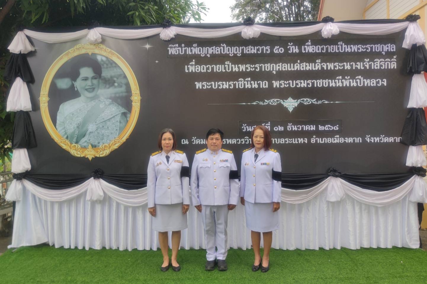 วันศุกร์ที่ 12 ธันวาคม 2568 นายไกรวุฒิ ตันติคะเนดี นักวิชาการแรงงานชำนาญการพิเศษ รักษาราชการแทนจัดหางานจังหวัดตาก มอบหมายให้นายสุริยา พรึงลำภู นักวิชาการแรงงานชำนาญการ พร้อมด้วยเจ้าหน้าที่สำนักงานจัดหางานจังหวัดตาก เข้าร่วมพิธีบำเพ็ญกุศล 50 วัน (ปัญญาสมวาร) เพื่ออุทิศถวายเป็นพระราชกุศล สมเด็จพระนางเจ้าสิริกิติ์ พระบรมราชินีนาถ พระบรมราชชนนีพันปีหลวง โดยมี นายชูศักดิ์ รู้ยิ่ง ผู้ว่าราชการจังหวัดตาก เป็นประธานในพิธี ณ พระอุโบสถ วัดมณีบรรพตวรวิหาร อำเภอเมืองตาก จังหวัดตาก