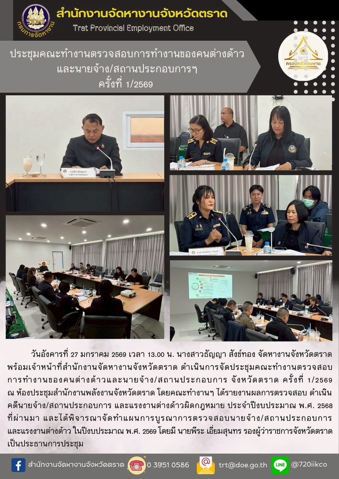 การทำงานของคนต่างด้าวและนายจ้าง/สถานประกอบการ จังหวัดตราด ครั้งที่ 1/2569