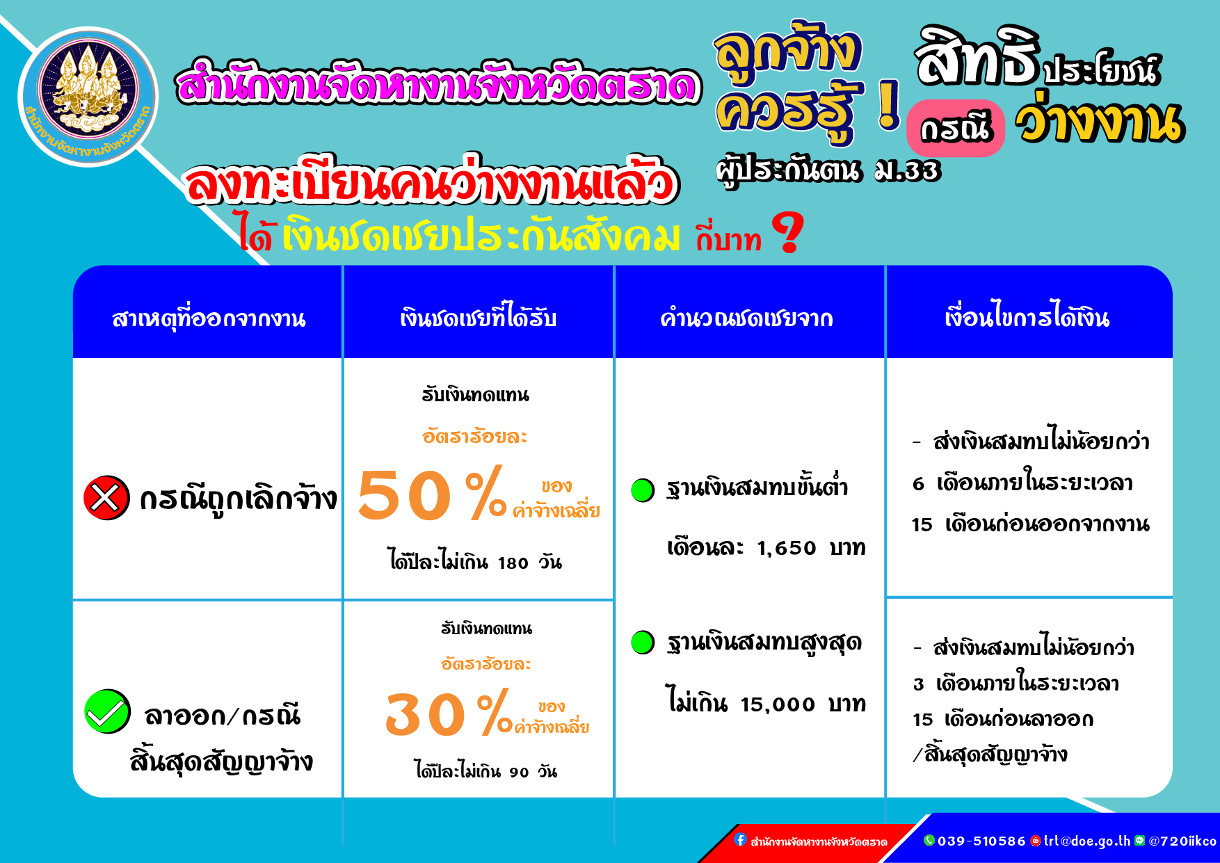 สำหรับผู้มีสิทธิได้รับเงินทดแทนกรณีว่างงาน เป็นผู้ประกันตนมาตรา 33