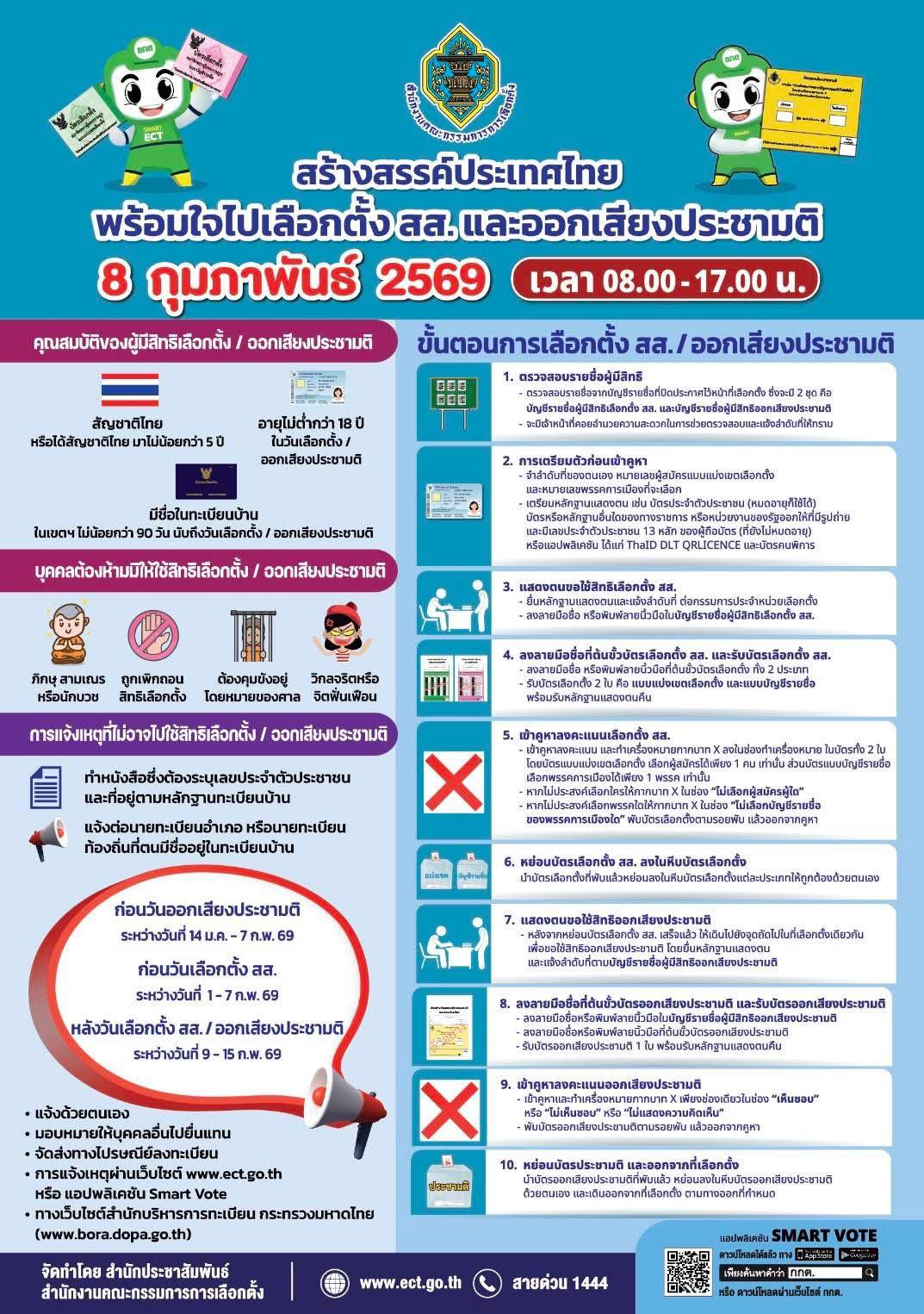 8 กุมภาพันธ์ 2569 เวลา 08.00 - 17.00 น. อย่าลืมไปใช้สิทธิ์กันนะคะ