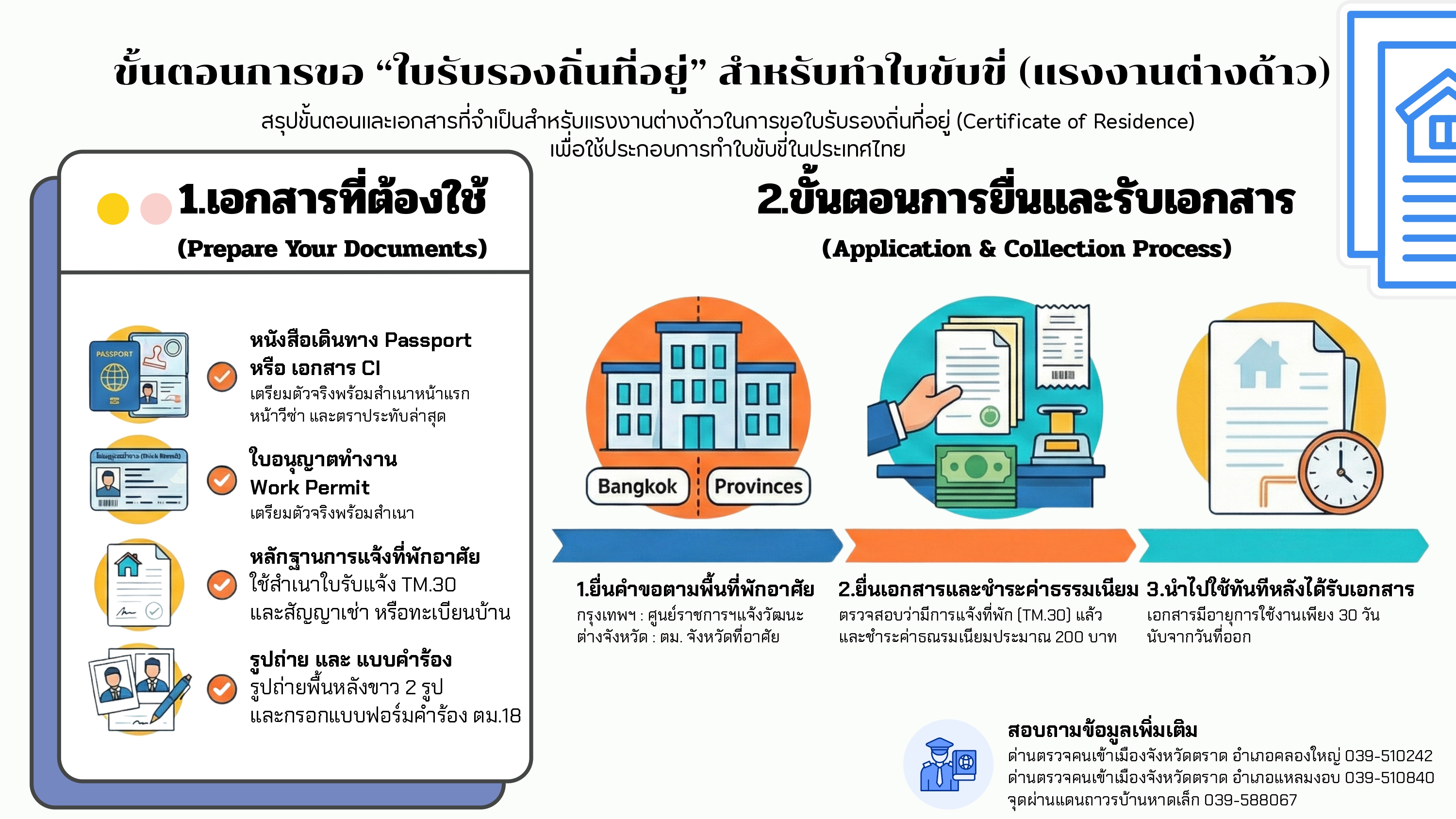 ขั้นตอนการขอ ใบรับรองถิ่นที่อยู่ สำหรับทำใบขับขี่ แรงงานต่างด้าว RSS