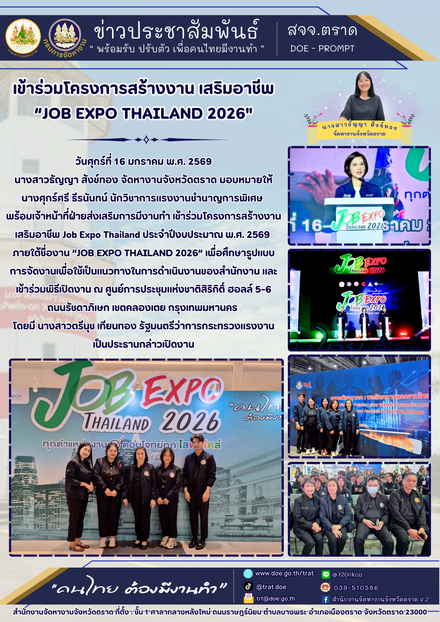 พร้อมเจ้าหน้าที่ฝ่ายส่งเสริมการมีงานทำ เข้าร่วมโครงการสร้างงาน เสริมอาชีพ Job Expo Thailand ประจำปีงบประมาณ พ.ศ. 2569