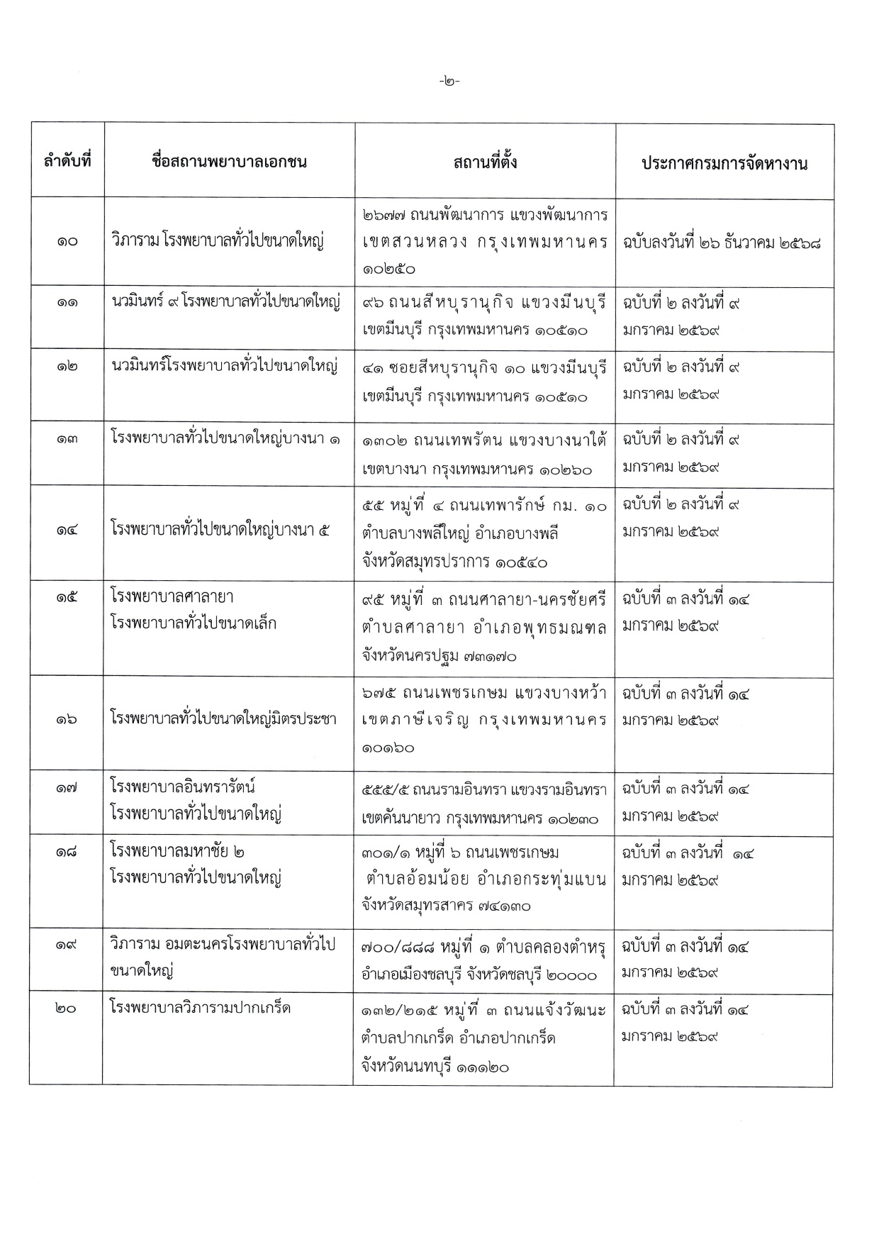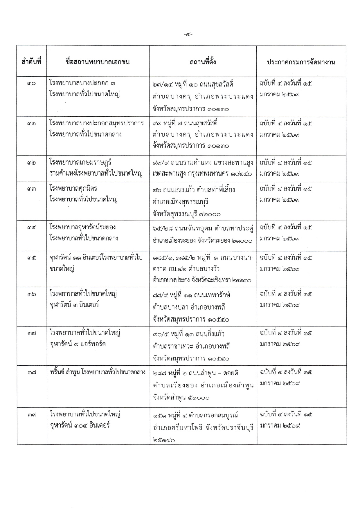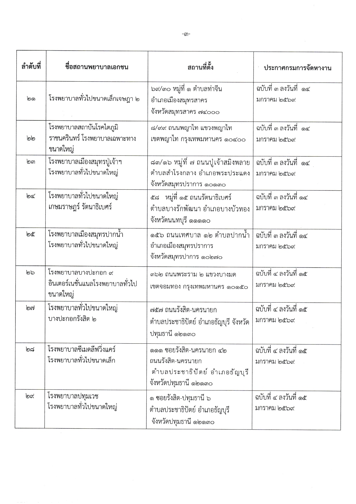 รายชื่อสถานพยาบาลเอกชนที่จะตรวจสุขภาพคนต่างด้าวตามติคณะรัฐมนตรี (ประกาศ กรมการจัดหางาน ฉบับที่ 1-6)