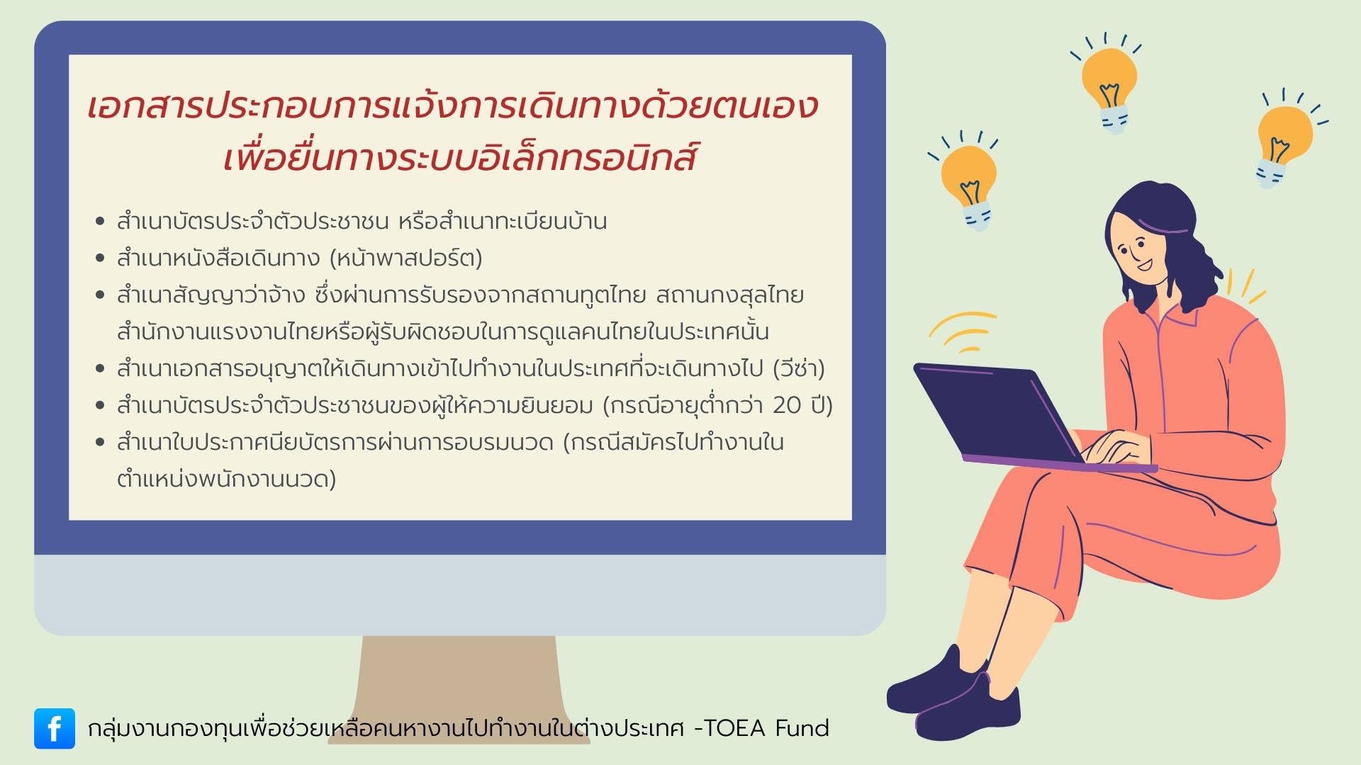 รวมทั้งคนหางานที่กลับมาพักในประเทศไทย Re-entry ขอแนะนำให้ตรวจสอบสถานภาพการเป็นสมาชิกกองทุนฯ ของท่านว่าหมดอายุแล้วหรือยัง และทำการต่ออายุสมาชิกกองทุนฯ เพื่อรับสิทธิประโยชน์และความคุ้มครองต่างๆ อย่างต่อเนื่องก่อนเดินทางออกนอกราชอาณาจักรทุกครั้ง