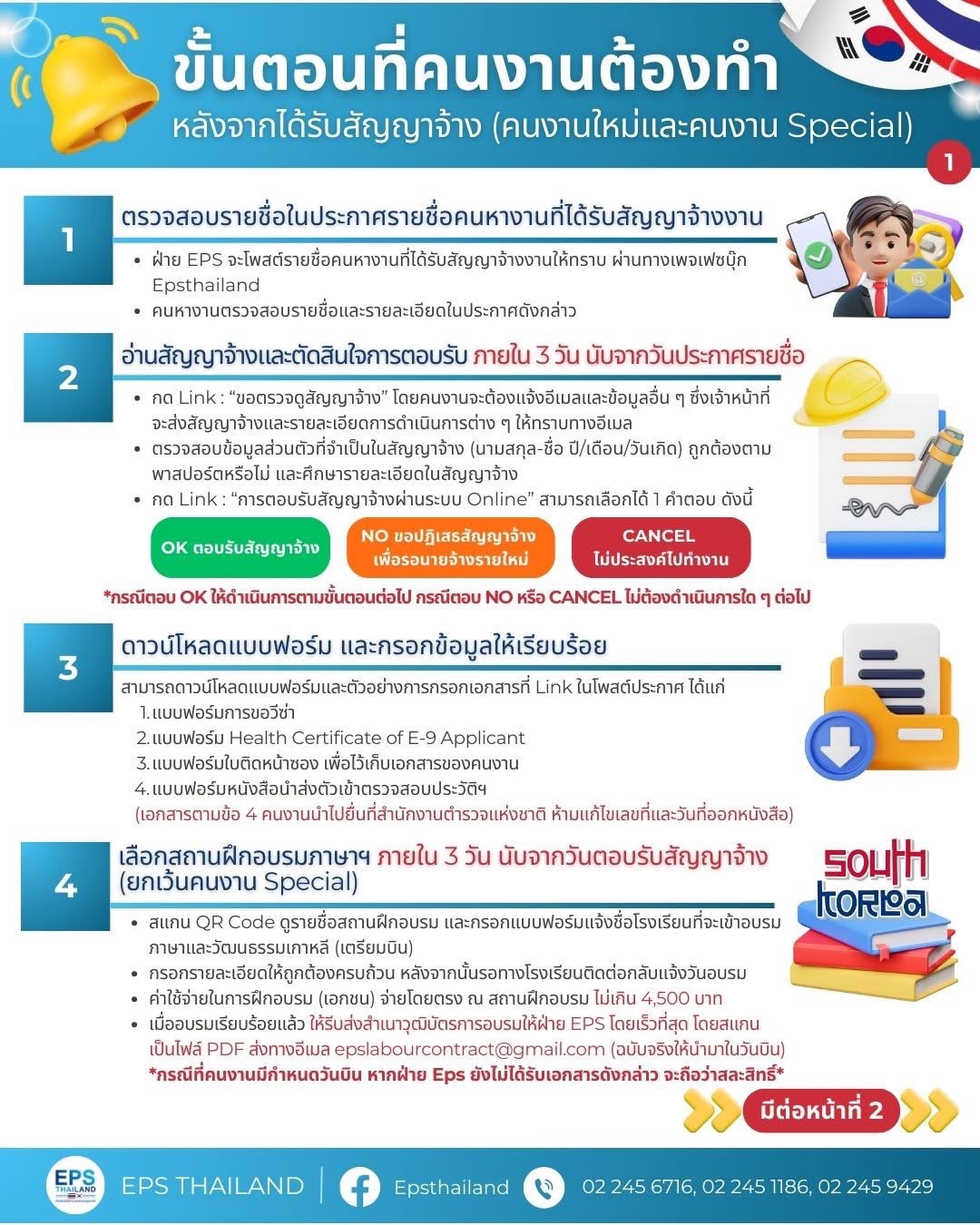 ⭐EPS Thailand แจ้งปรับเปลี่ยนขั้นตอนที่คนงานจะต้องทำหลังจากได้รับสัญญาจ้าง (คนงานใหม่และคนงาน Special) ซึ่งจะมีการปรับใช้ในเร็ว ๆ นี้⭐