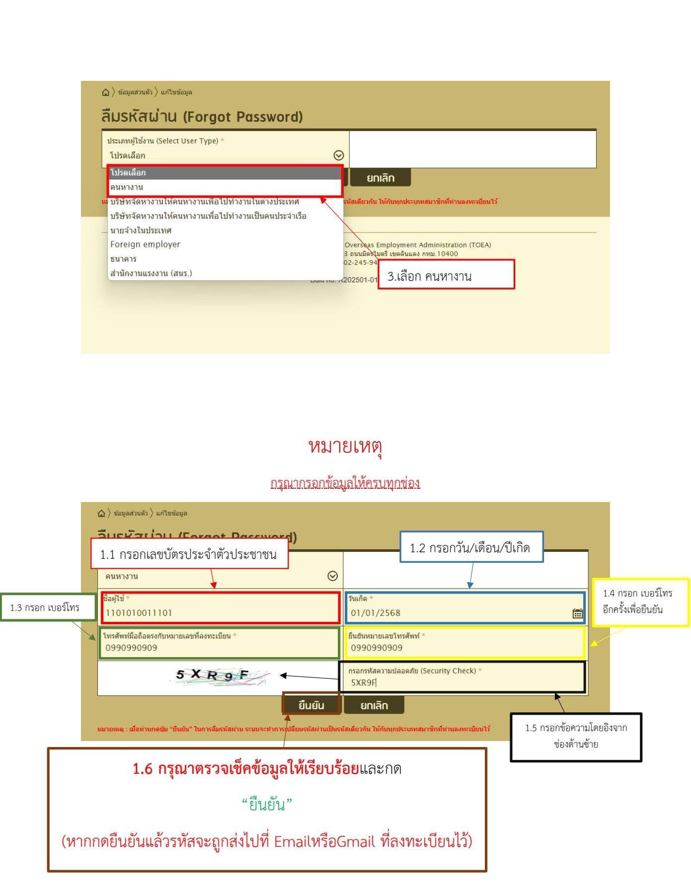 วิธี Reset รหัสผ่าน ระบบอิเล็กทรอนิกส์การบริหารแรงงานไทยไปต่างประเทศ (https://toea.doe.go.th) ด้วยตนเอง