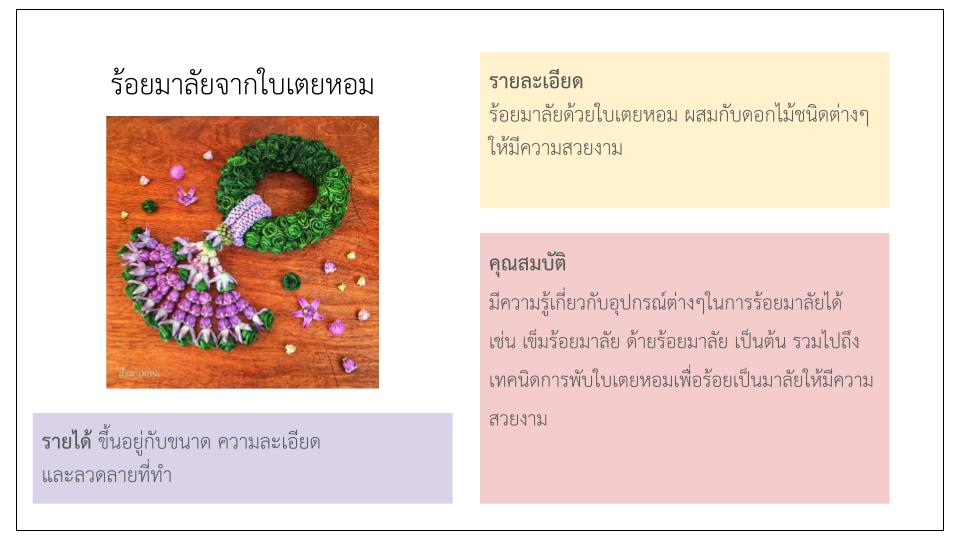 ร้อยมาลัยจากใบเตยหอม